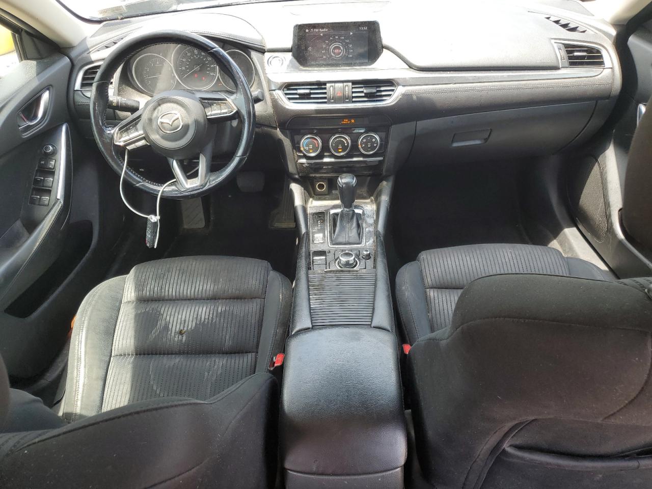 FairThe 2017 MAZDA 6 SPORT, finished in blue, has sustained significant front-end damage, with visible body panel damage. The wheels and lights appear to be in good condition. Inside, the interior shows minor wear and tear, consistent with its age, with no immediately visible airbag deployment. The car is a Run & Drive Verified vehicle. Damage Summary: * **Front-end damage:** Severe damage to the front, specifically the hood and bumper. * **Body damage:** Visible damage to body panels. * **Interior condition:** The interior shows moderate wear, reflecting the car's history and usage.