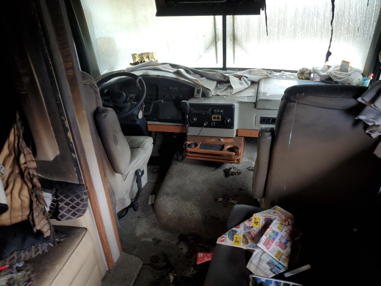 PoorThis is a 2002 WORKHORSE CUSTOM CHASSIS MOTORHOME. The primary damage is from a severe interior and engine burn. The vehicle is beige in color. The pictures show extensive fire damage throughout the interior, with charred walls and ceiling. The rear of the RV is completely burnt out. The damage extends to the engine and other mechanical components as well. The wheels appear intact, but the overall state is severely compromised. The vehicle is not drivable and requires extensive repairs or is beyond repair.