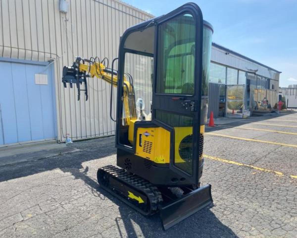 GoodThe mini excavator, a 2025 model, presents in a vibrant yellow. It has a minor dent and scratches, with no secondary damage. It has a 'Run & Drive Verified' status.
