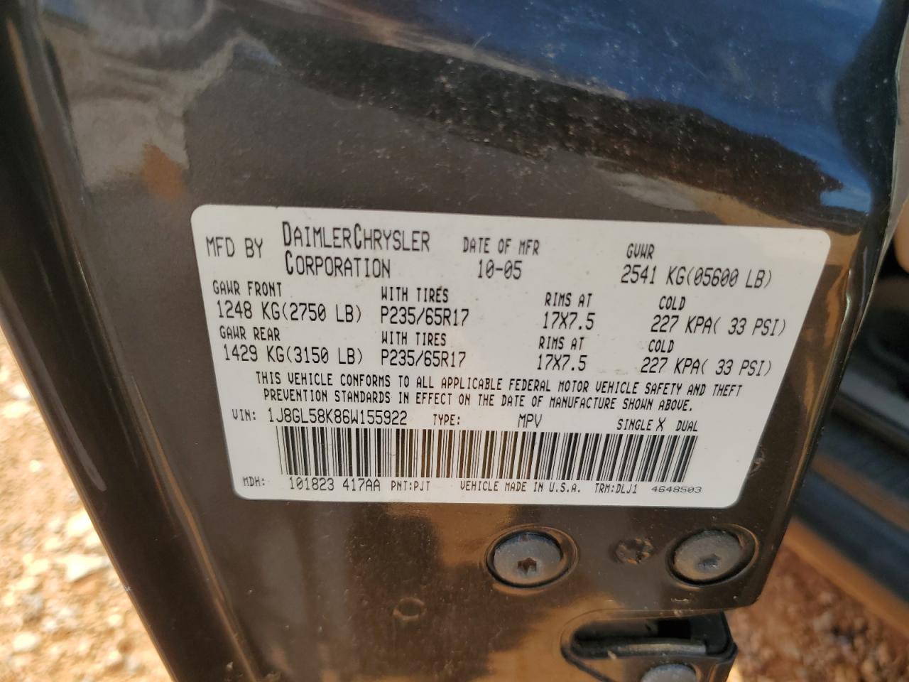1J8GL58K86W155922Final Bid