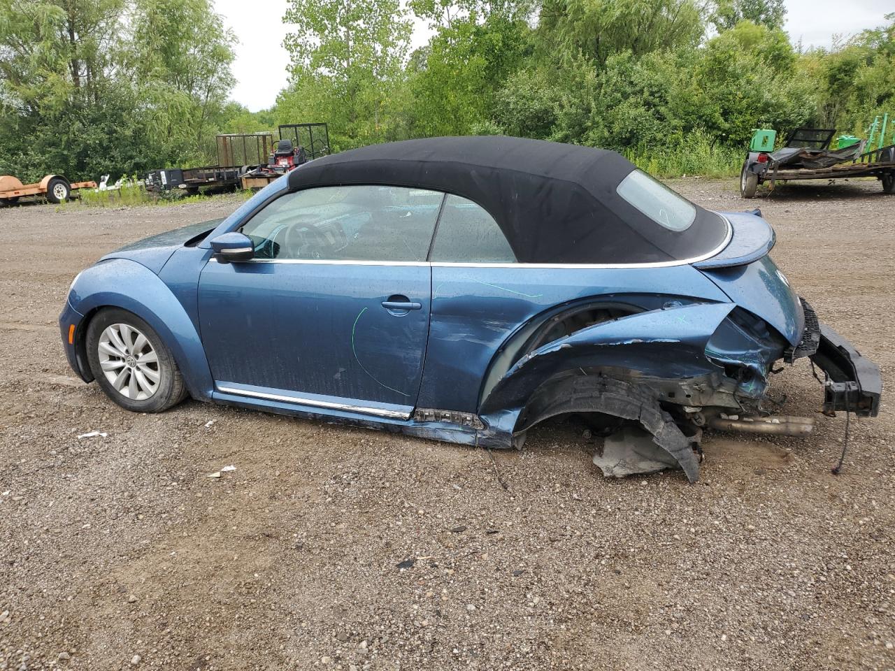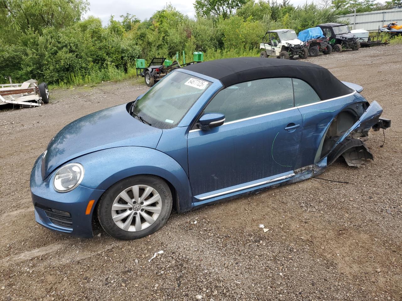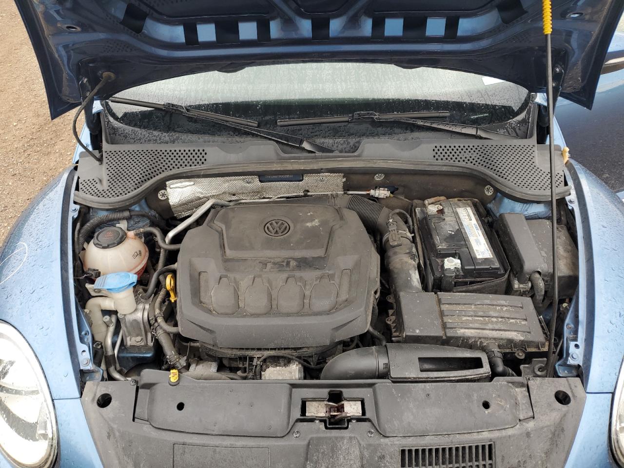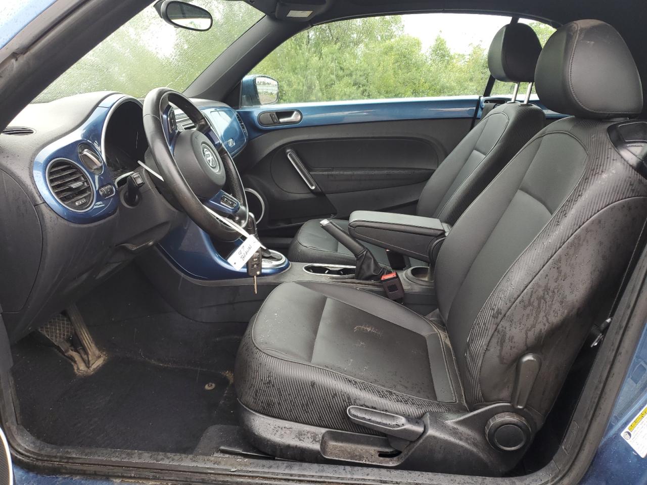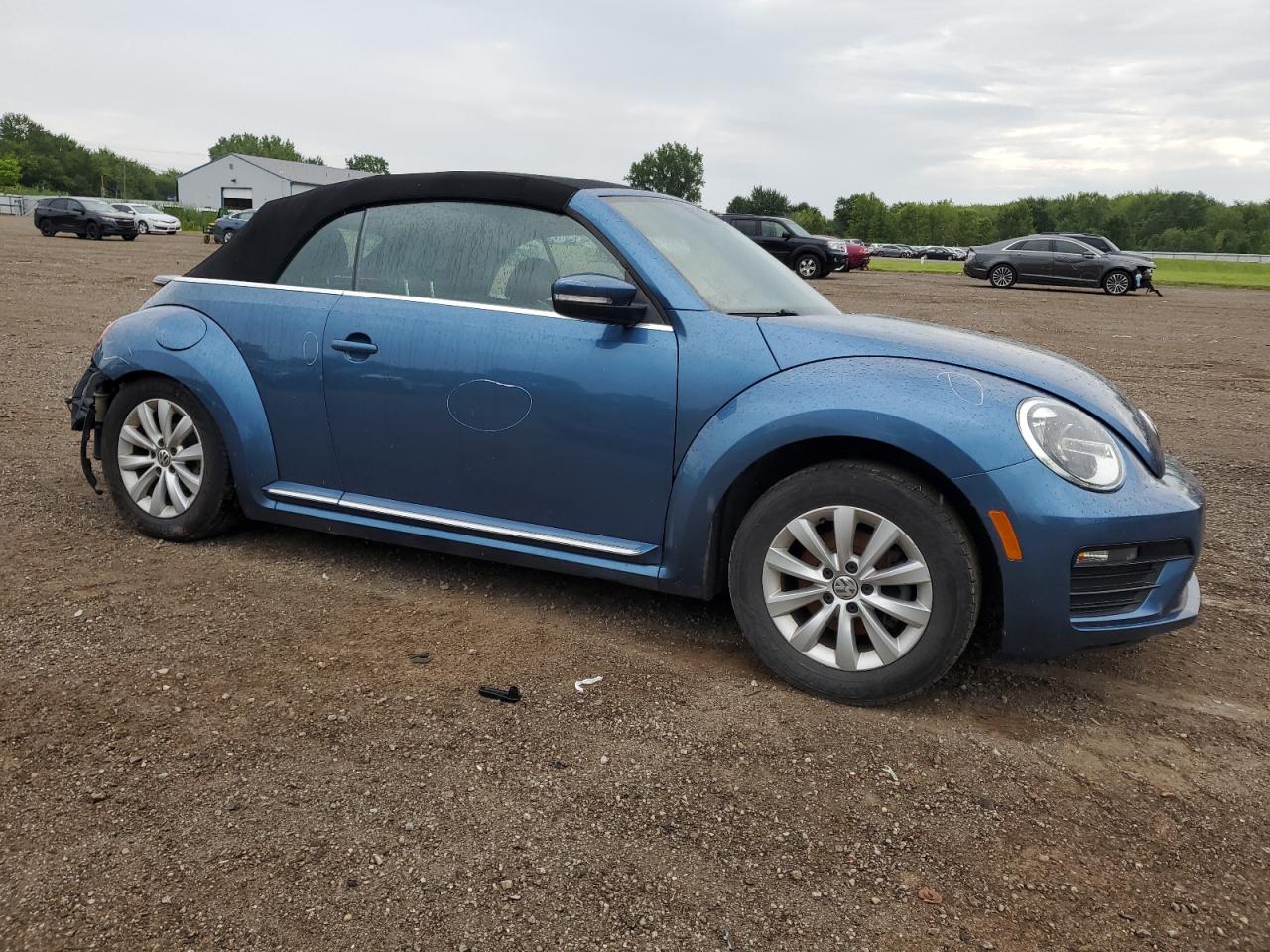 FairThe 2019 VOLKSWAGEN BEETLE S, blue in color, shows significant side damage and undercarriage damage. The vehicle starts. The car's exterior exhibits moderate visible damage, particularly along the sides and front. The wheels appear to be in good condition. The interior shows minor signs of wear and tear. This car needs repairs.