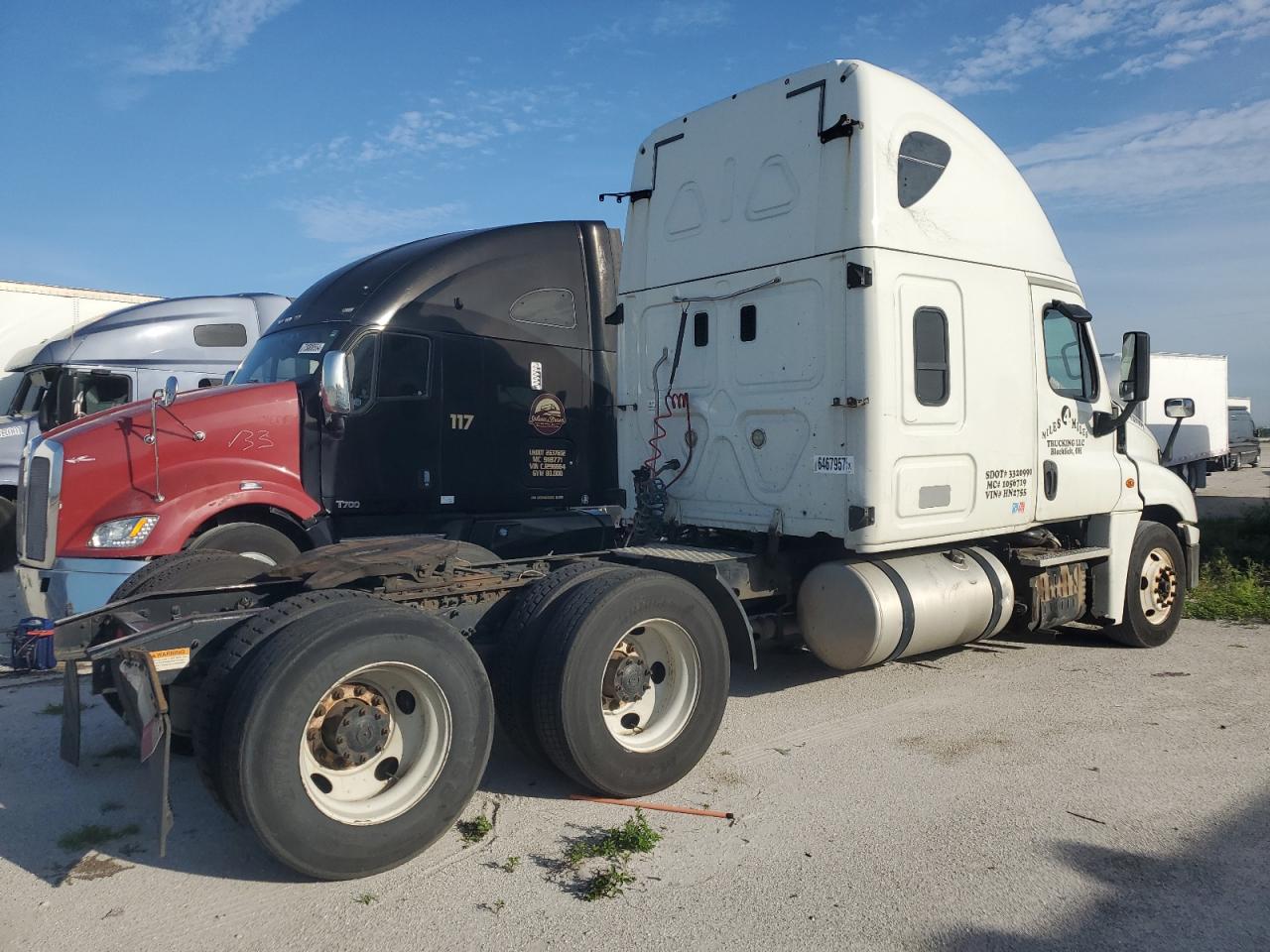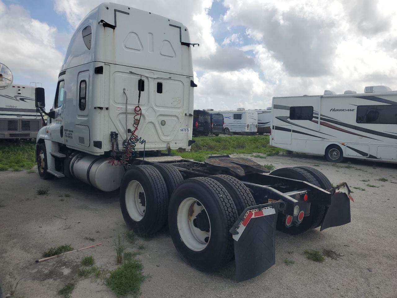 GoodThis is a 2016 Freightliner Cascadia 1. The vehicle's primary damage is normal wear, with secondary minor dents and scratches. The exterior color is white. The vehicle appears drivable. The interior shows signs of wear consistent with its age and mileage. The wheels and lights appear to be in decent condition. The glasses seem to be intact.