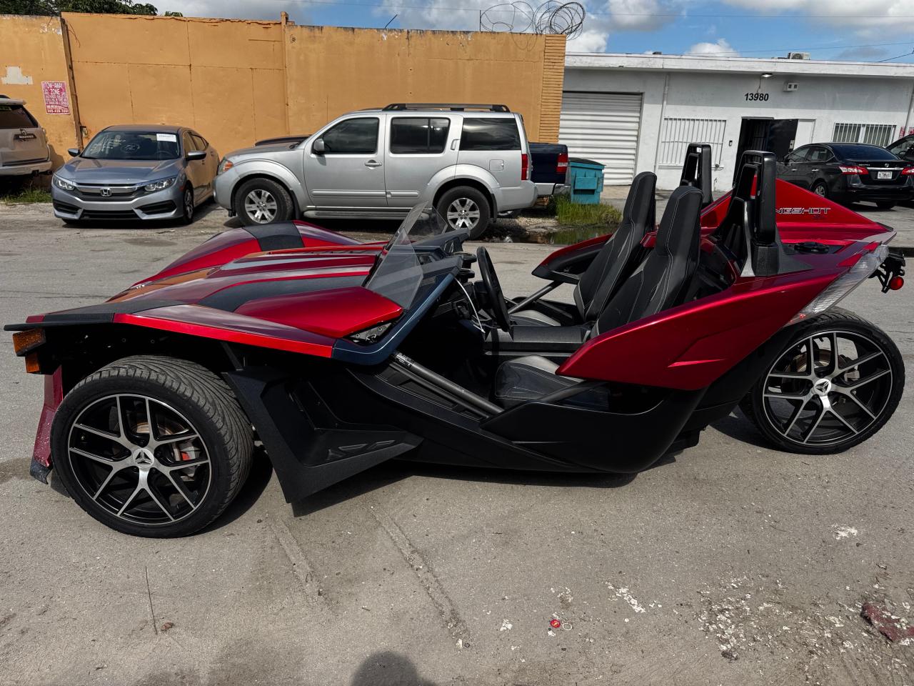 GoodThis 2019 POLARIS SLINGSHOT in red is in overall good condition. The vehicle has body damage but remains drivable. The interior shows minor wear and tear. The wheels and lights appear to be in good condition. The glass is intact.