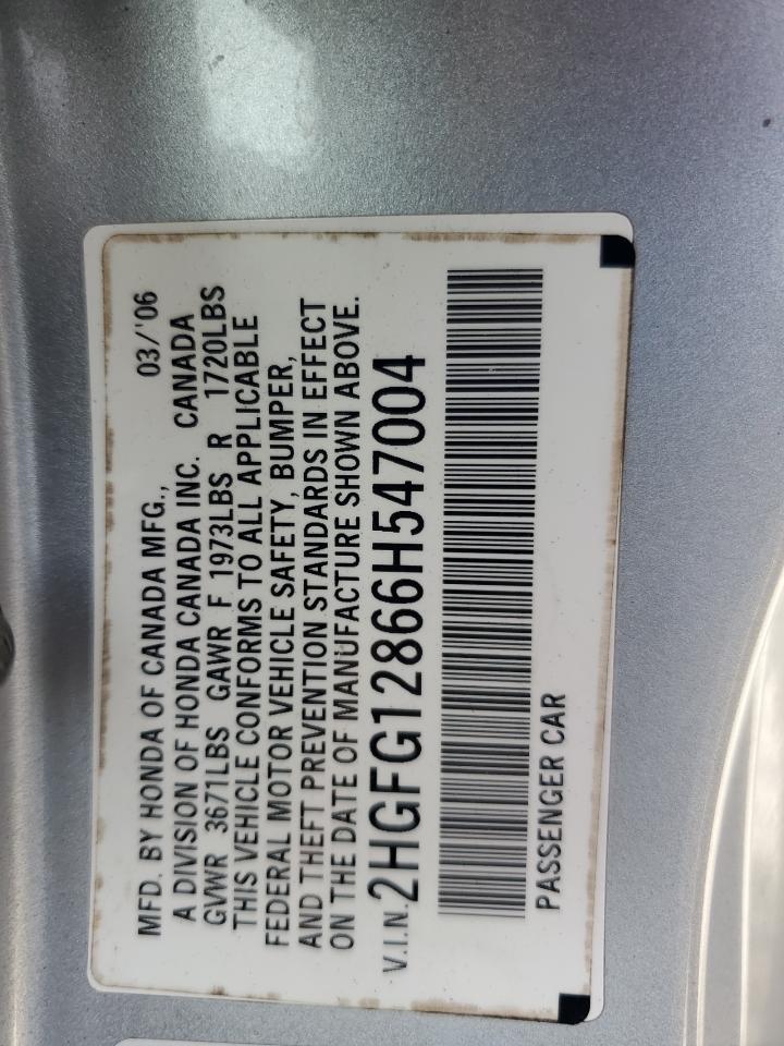 FairThe 2006 Honda Civic EX is silver in color with Run & Drive Verified status. It has Normal Wear as the primary damage and no secondary damage. The car exhibits moderate visible damage, particularly to the body panels. Wheels are fine. Interior condition is good, with minor wear consistent with age. The vehicle is drivable and requires some repair.