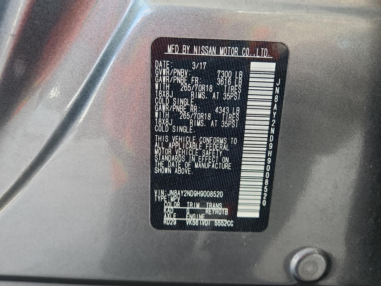 GoodThe 2017 Nissan Armada SV in gray exhibits minor dents and scratches. The vehicle's exterior shows signs of wear, with the body panels affected by minor damage. There are no significant issues with the wheels, lights, or glasses. The interior is in good condition, with no significant damage. The car is drivable, with the engine and transmission functioning properly. The airbags appear to be intact. This Armada is a solid option for those seeking a reliable SUV. Start code: Run & Drive Verified.