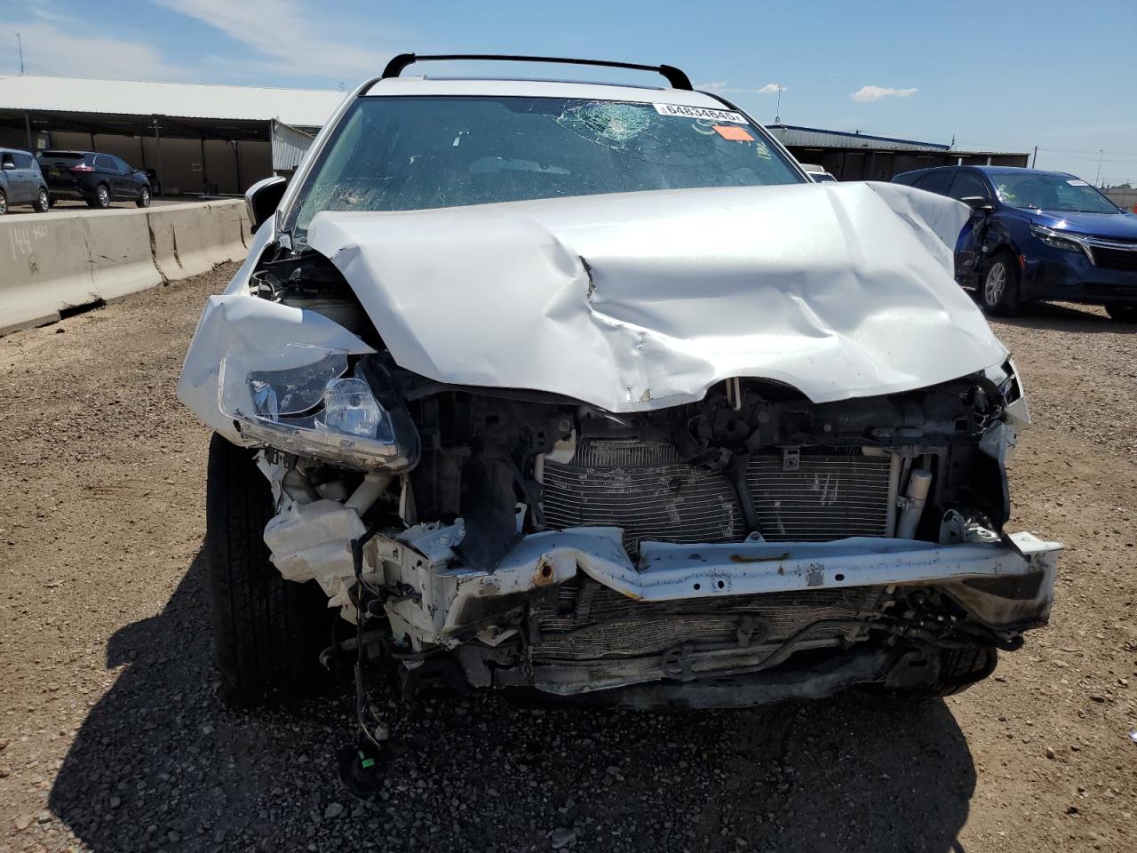 Severe damage to front end and roof. Airbag deployment. Wheels are present and undamaged.