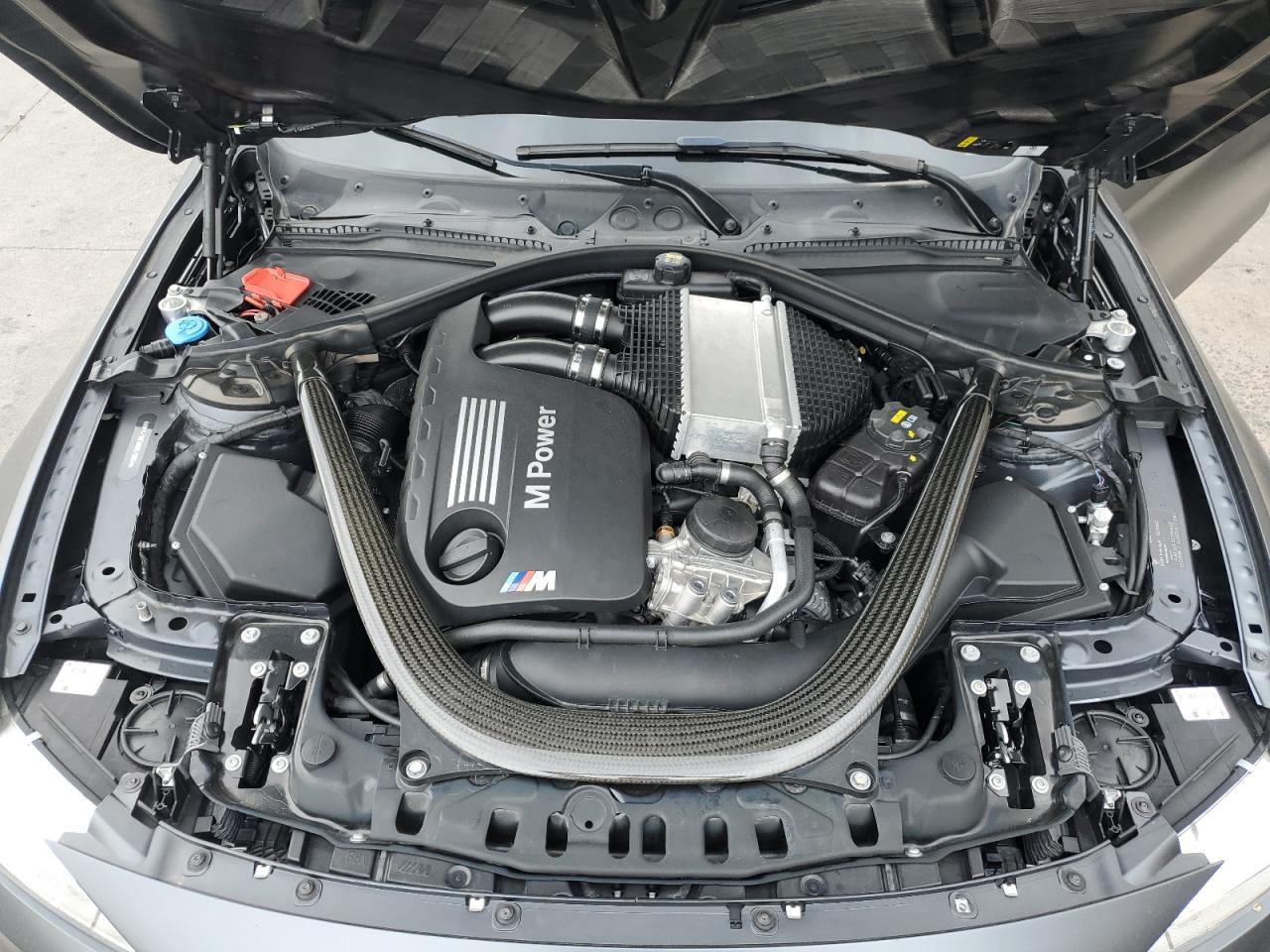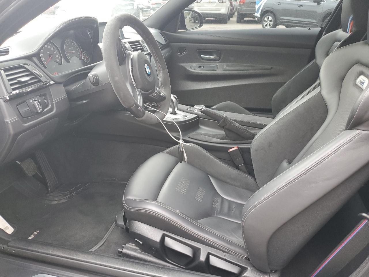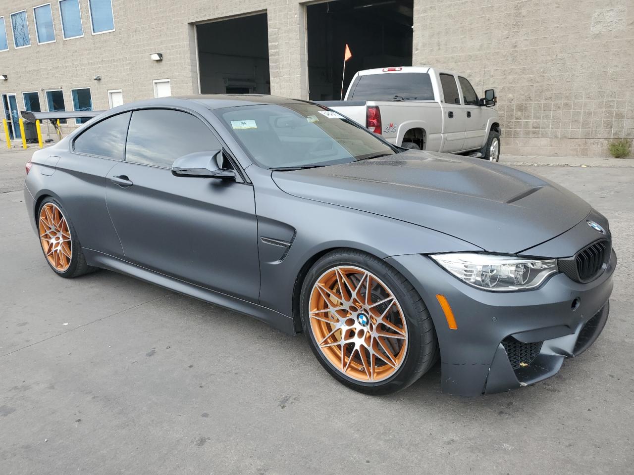 FairThis is a 2016 BMW M4 GTS, a high-performance coupe known for its track-focused design and powerful engine. This vehicle shows damage primarily to the front end. The car's exterior is gray, complemented by unique orange-colored wheels. The interior appears to have some wear but overall is in a reasonable condition.
