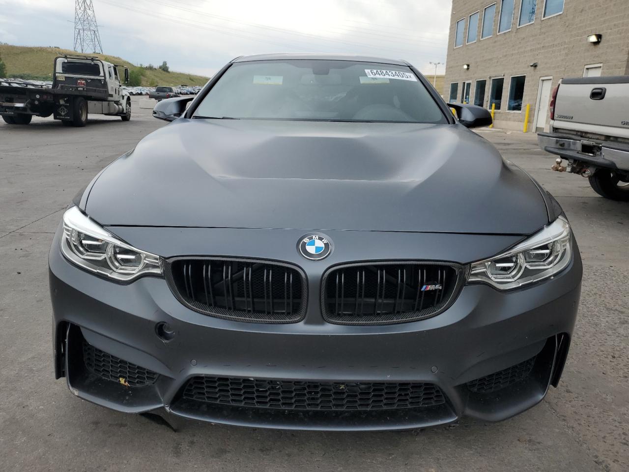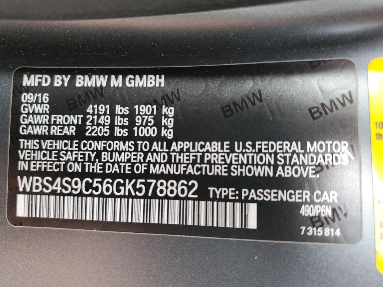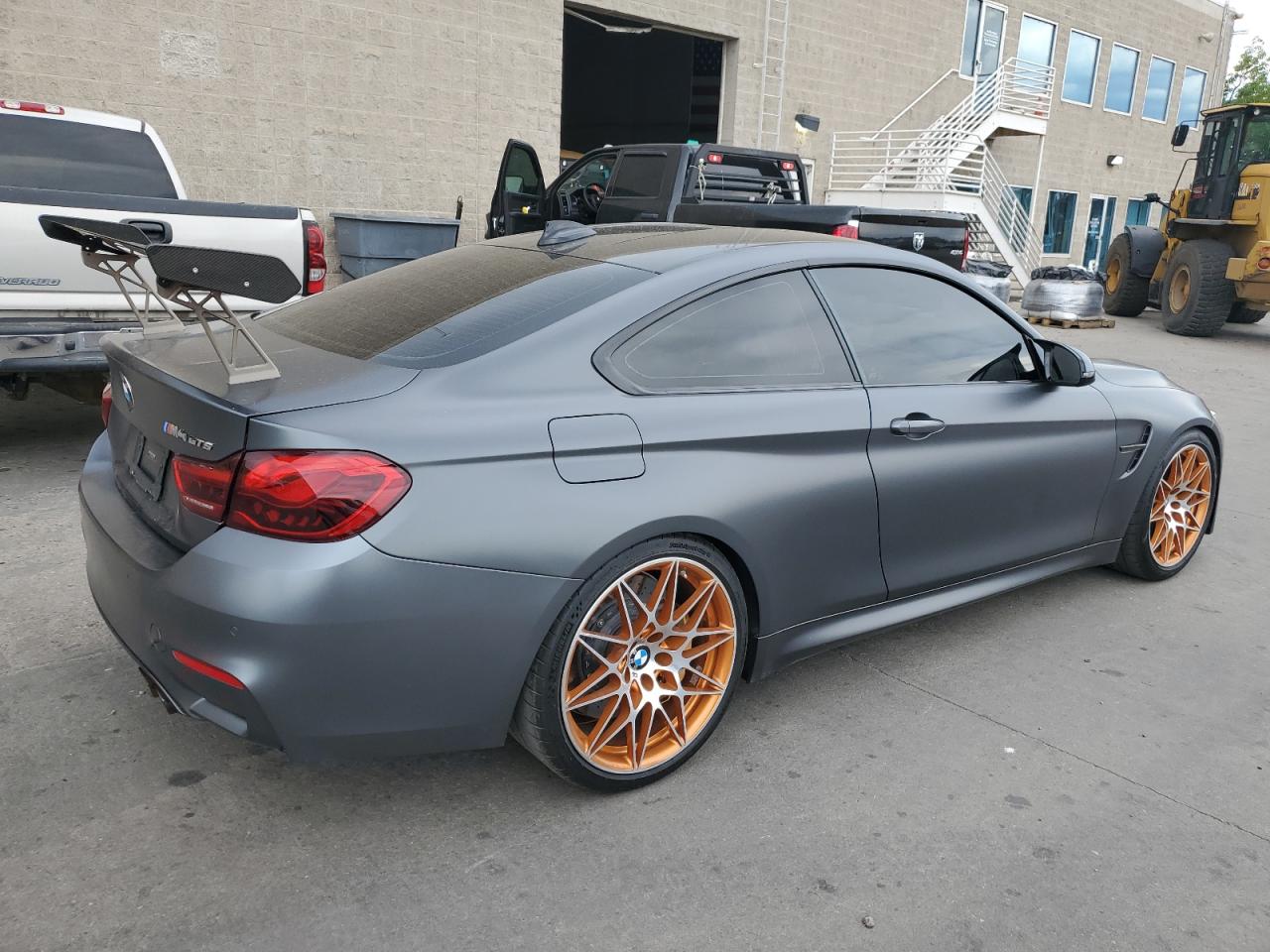 FairThis is a 2016 BMW M4 GTS, a high-performance coupe known for its track-focused design and powerful engine. This vehicle shows damage primarily to the front end. The car's exterior is gray, complemented by unique orange-colored wheels. The interior appears to have some wear but overall is in a reasonable condition.
