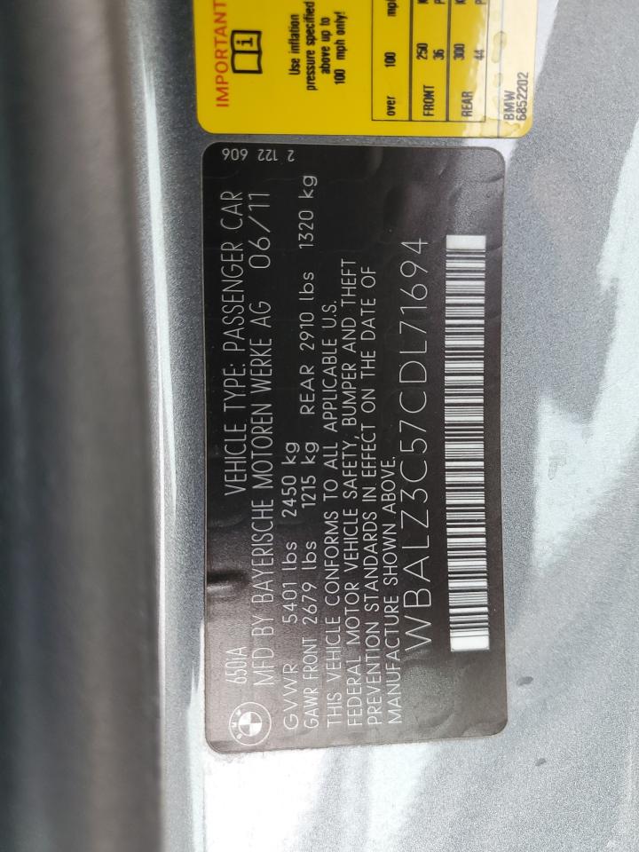 FairThis is a 2012 BMW 650i convertible. The car is gray and has suffered front-end damage. The vehicle is listed as Run & Drive Verified. Damage Description: The primary damage is to the front end, with significant body panel damage. The car's exterior has moderate damage, requiring repairs. The interior shows signs of wear, consistent with the vehicle's age and mileage. Airbags status: not specified. Wheels and glasses in good condition. Summary: This BMW 650i convertible, a gray coupe, has suffered front-end damage, making it a repairable vehicle. The overall condition is 'Fair', indicating moderate damage requiring repair. Search terms: BMW 650i, convertible, gray, front-end damage, damaged car, repairable, body damage, for sale.