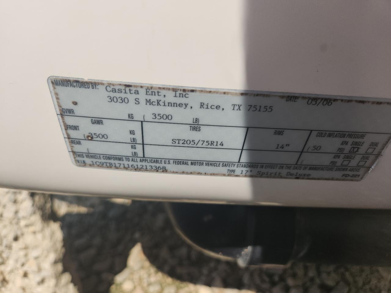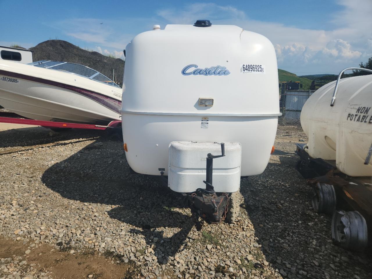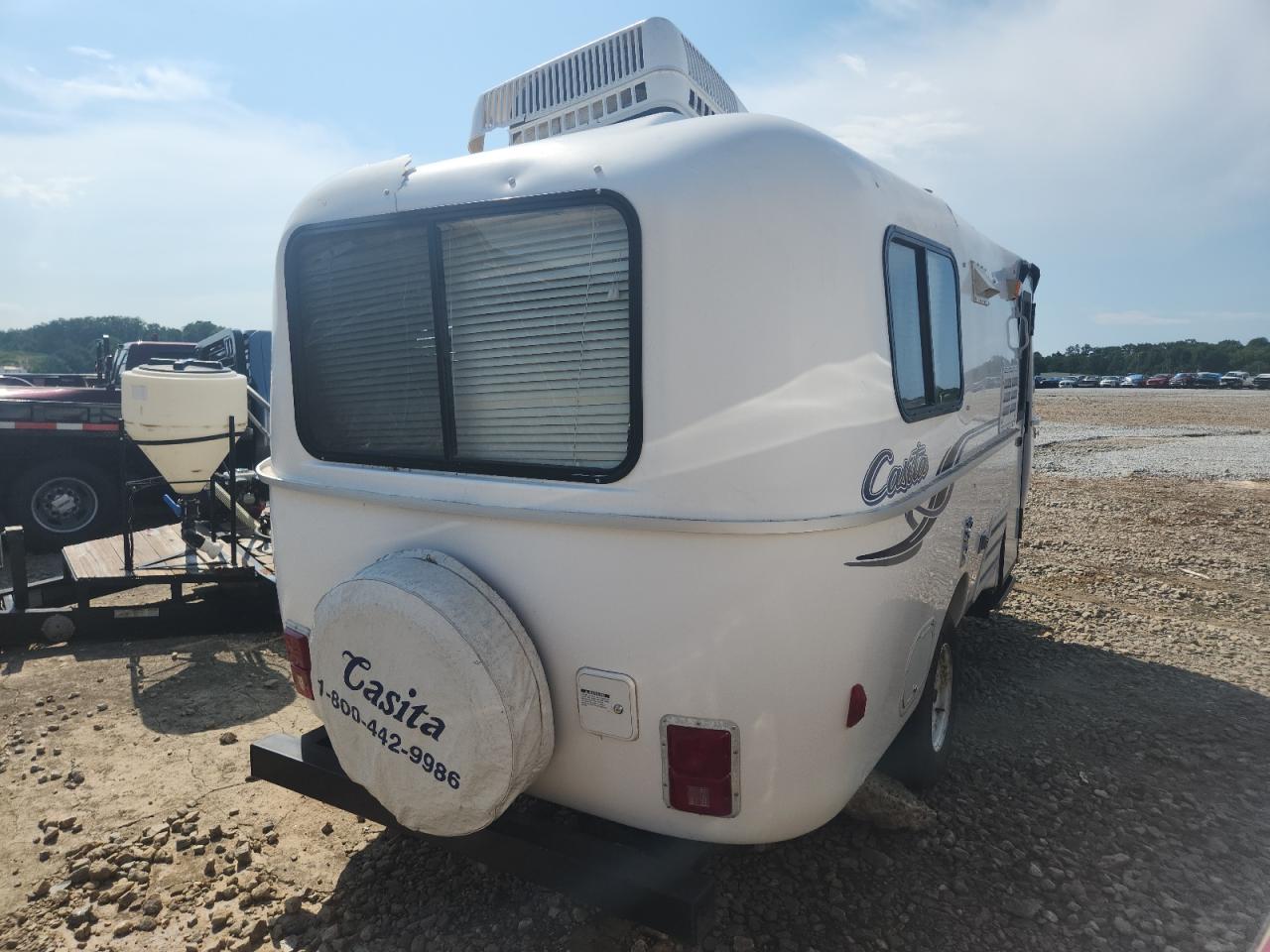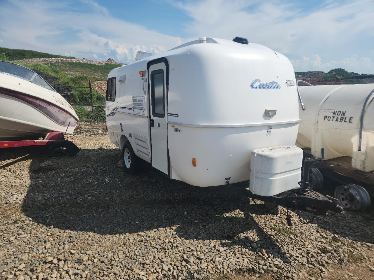 FairThe 2006 Casita travel trailer shows significant damage. The primary damage is to the side of the trailer with a large opening. Secondary damage is evident on the top/roof. The exterior is white. Wheels and lights appear intact but the glass is likely damaged due to the openings in the body. Interior damage is present, with visible structural and component damage. The trailer is likely not drivable in its current condition.