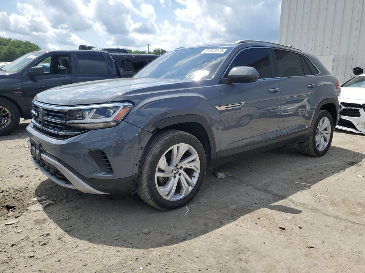 GoodThis is a 2021 VOLKSWAGEN ATLAS CROSS Sport. The car is gray and starts with a Run & Drive Verified code. The vehicle has visible damage, primarily on the side, with minor dents and scratches. The wheels and lights appear to be in good condition. The interior shows minimal wear and tear. Airbags are not explicitly mentioned as damaged. The car is drivable.