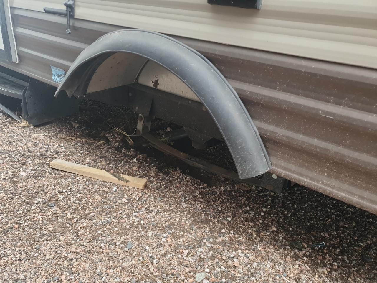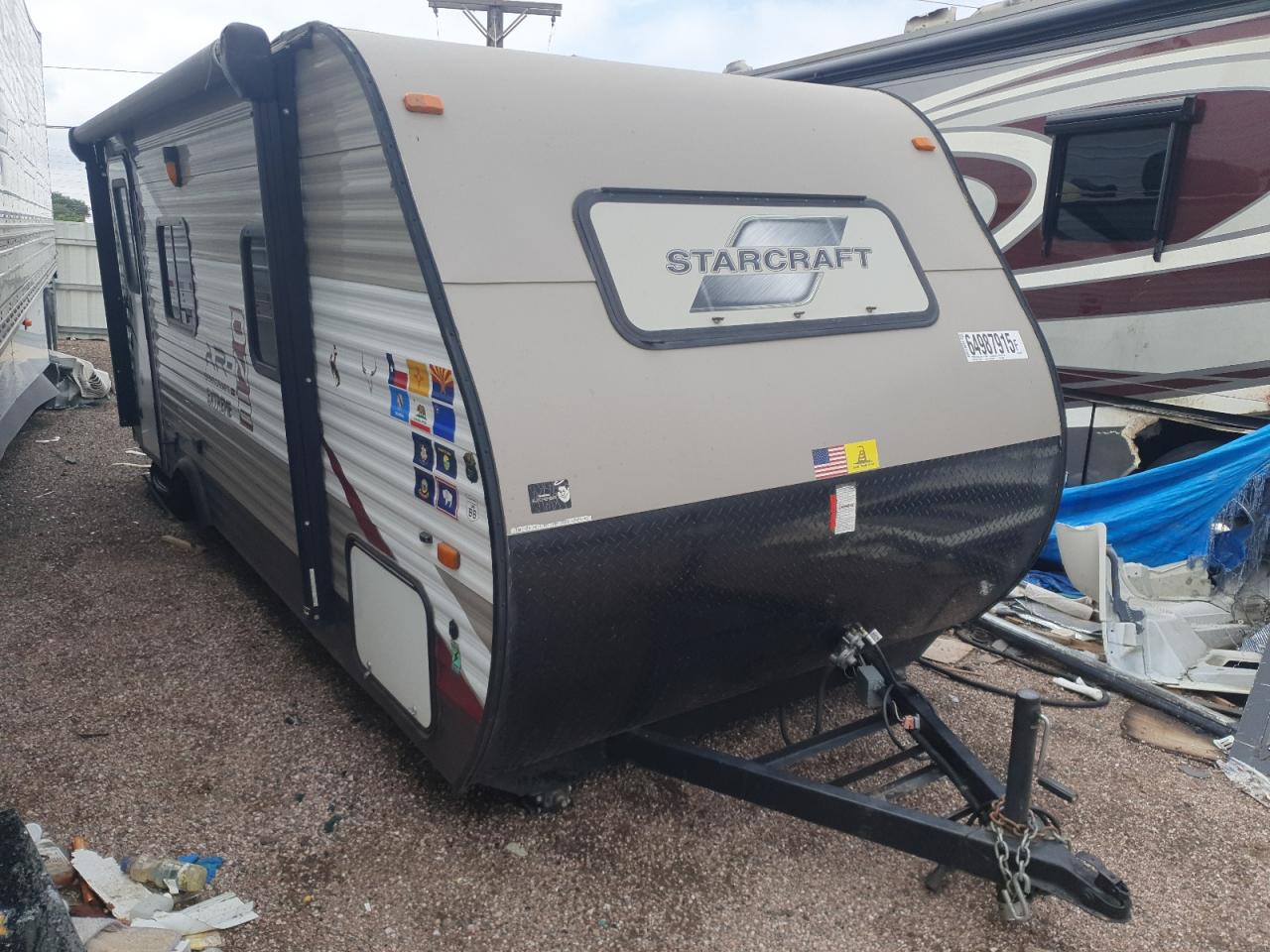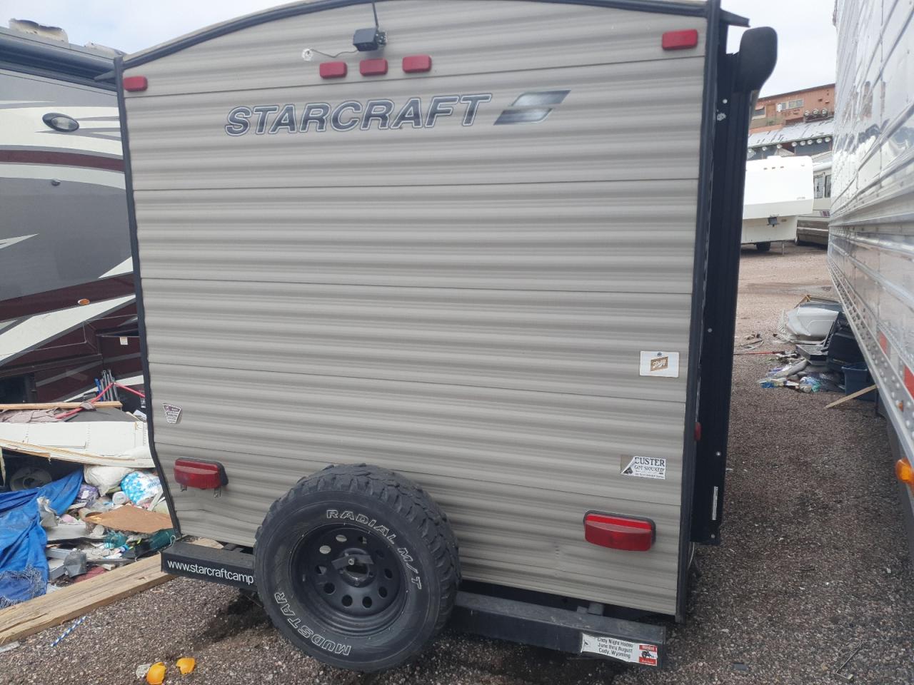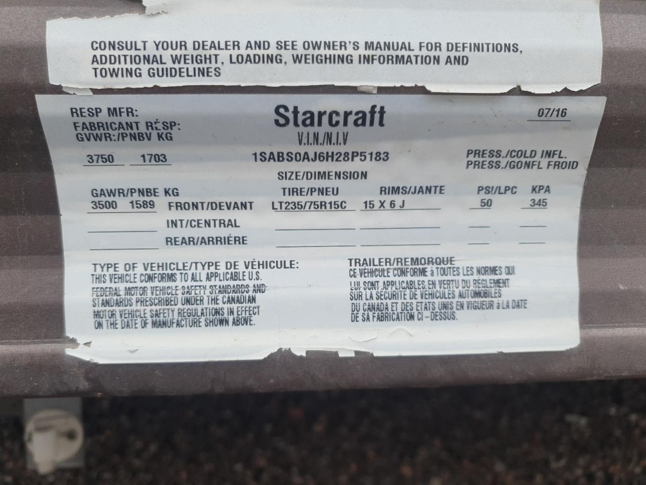 The STARCRAFT TRAILER 2017 has notable damage. The side of the trailer shows significant damage, and the undercarriage is also affected. The body panels have damage. The wheels are damaged. The trailer is in poor condition and requires significant repairs, likely not drivable as is. This could be described in search terms as a "damaged STARCRAFT TRAILER", "trailer for sale with side damage", "STARCRAFT TRAILER with undercarriage issues", "salvage STARCRAFT TRAILER".