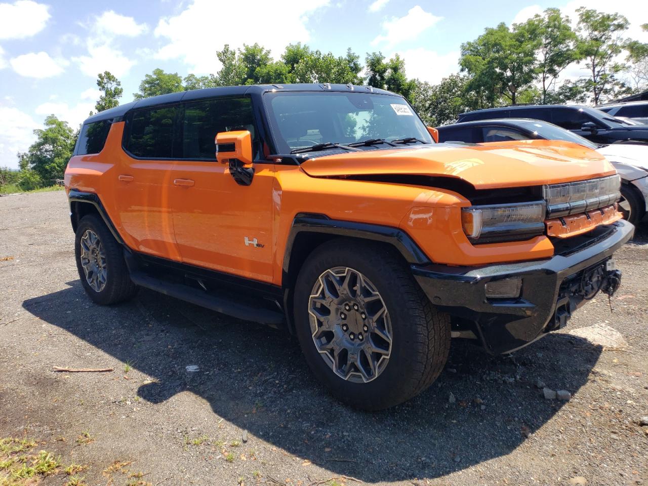 FairThis 2024 GMC HUMMER SUV, painted in vibrant orange, presents with notable front-end damage, categorized as body damage. The vehicle's exterior condition is rated as Fair, reflecting moderate damage. The interior is in Good condition. The SUV has a Run & Drive Verified start code, but the visible damage necessitates repairs. The summary highlights a damaged front end, impacting the overall condition.