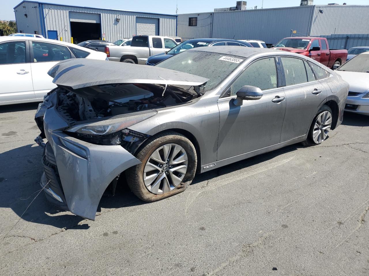 FairThis silver 2022 TOYOTA MIRAI LE shows extensive front-end damage, indicating a significant impact. The body panels are severely damaged, and the front end components are compromised. The interior shows signs of airbag deployment and other damage. The vehicle is likely drivable but requires considerable repair.