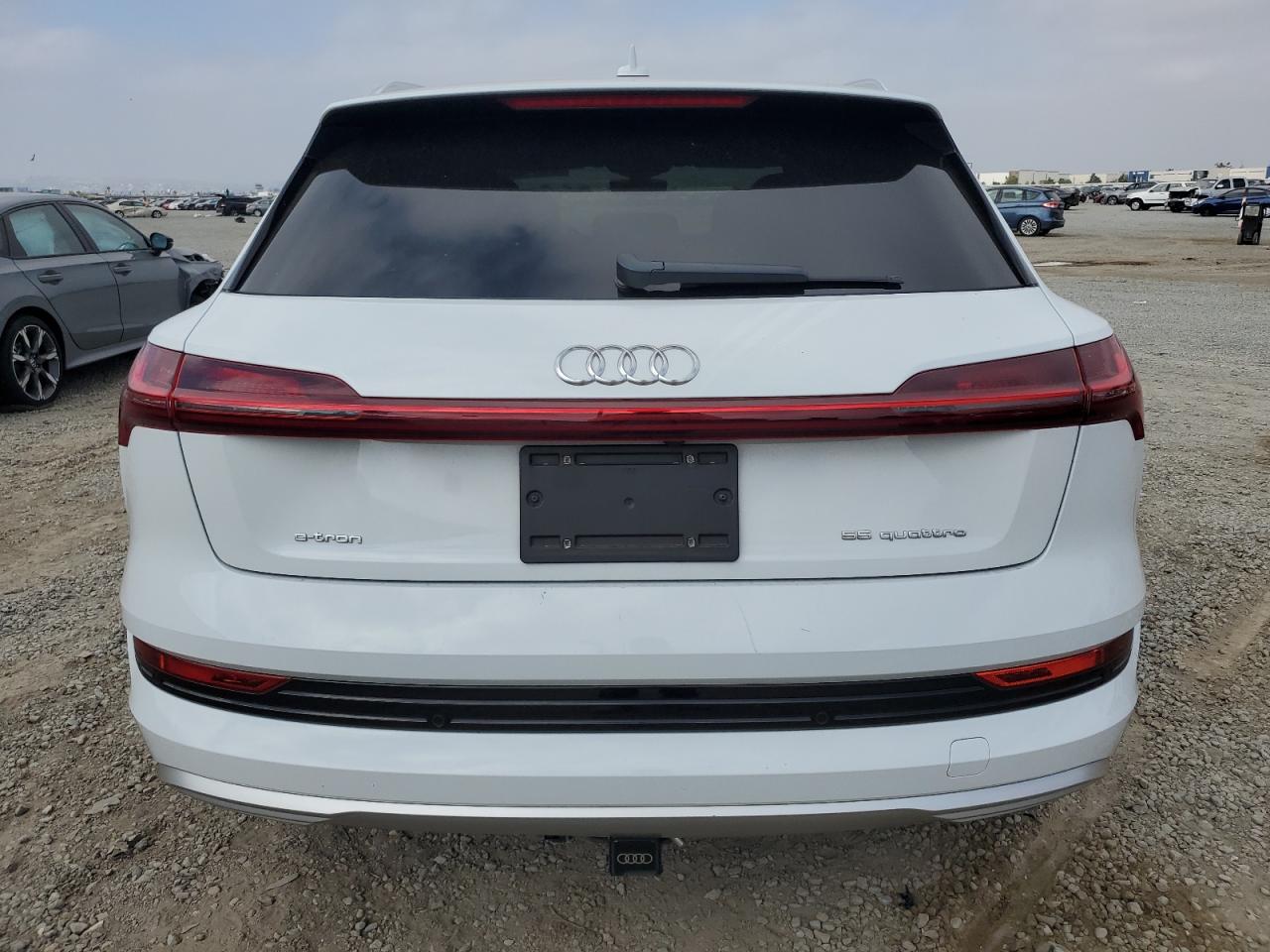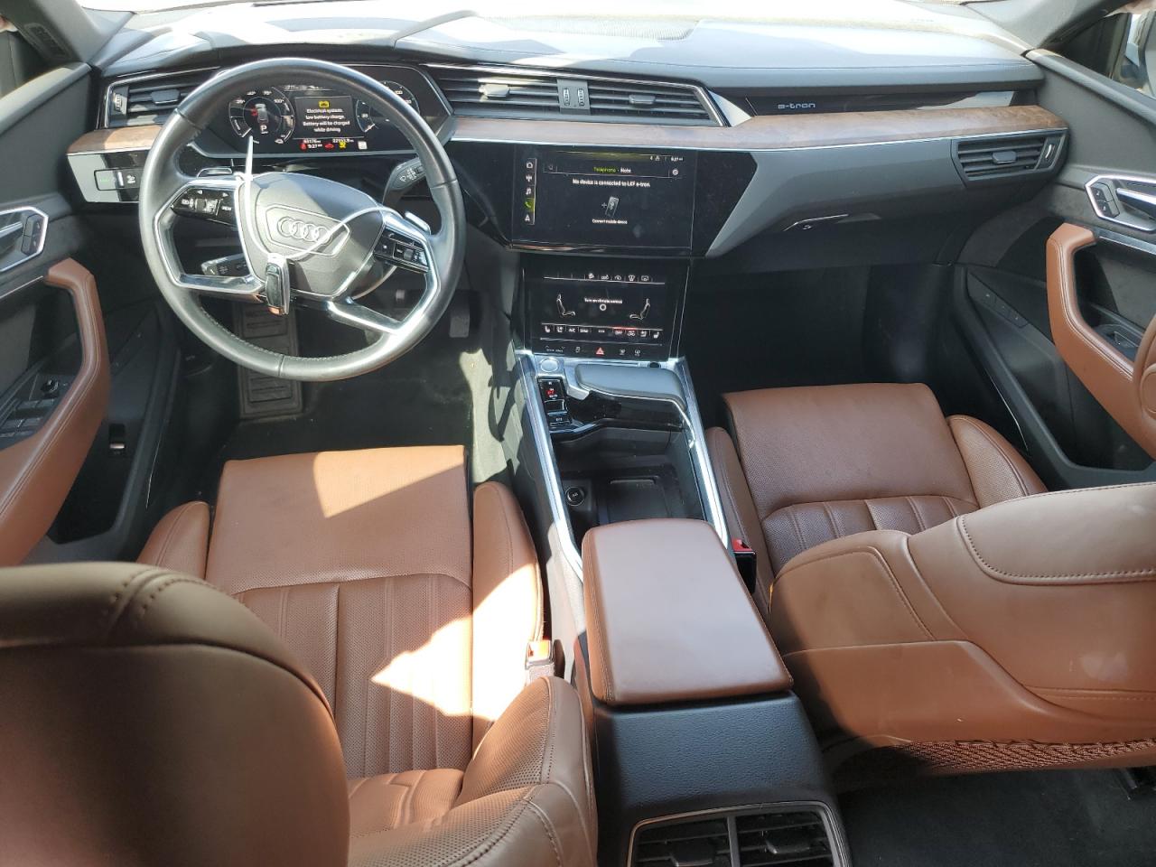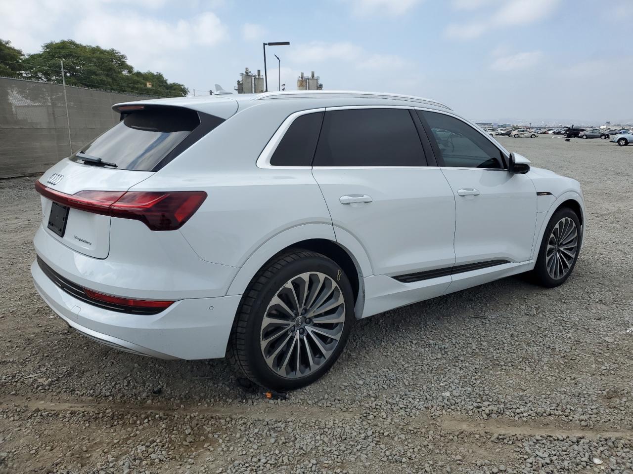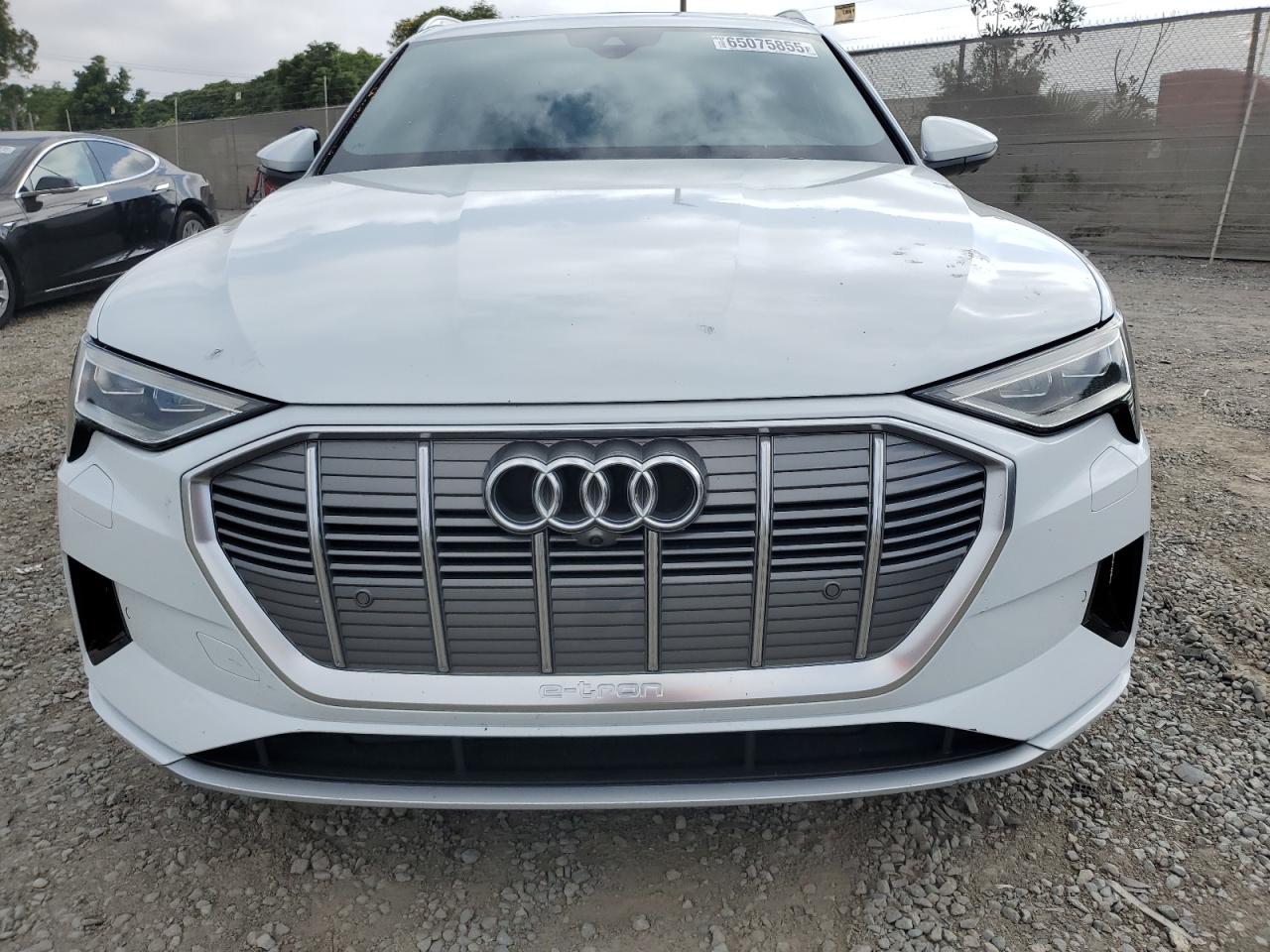 FairThe white AUDI E-TRON PRE 2019 exhibits significant side body damage. The exterior shows noticeable dents and scrapes on the driver's side. The interior appears to be in relatively good condition with some wear and tear, but no significant damage is immediately apparent, The vehicle's lights and glasses appear intact, but there are no visible damages .The car's wheels are fine. The interior features brown leather seats.