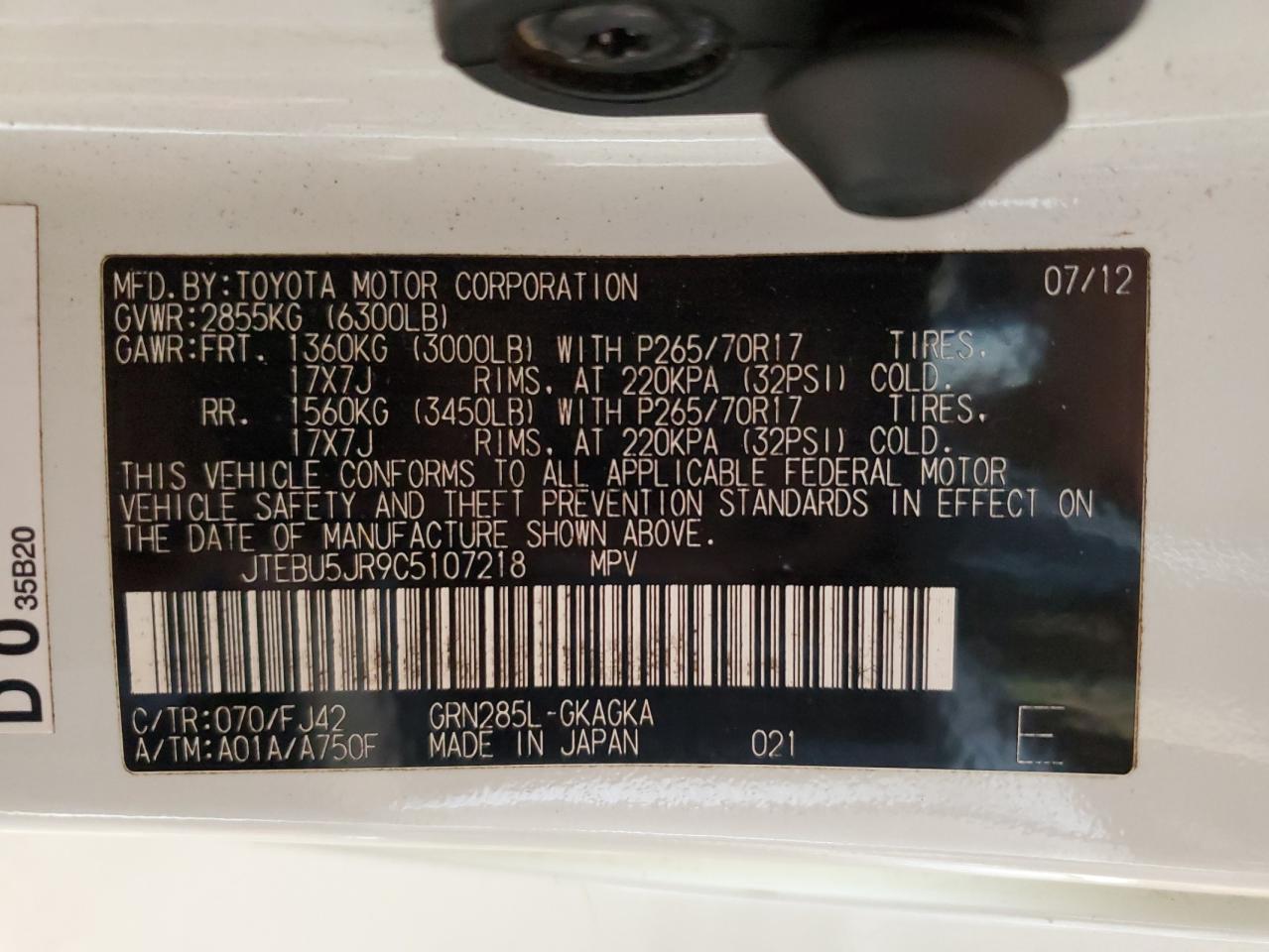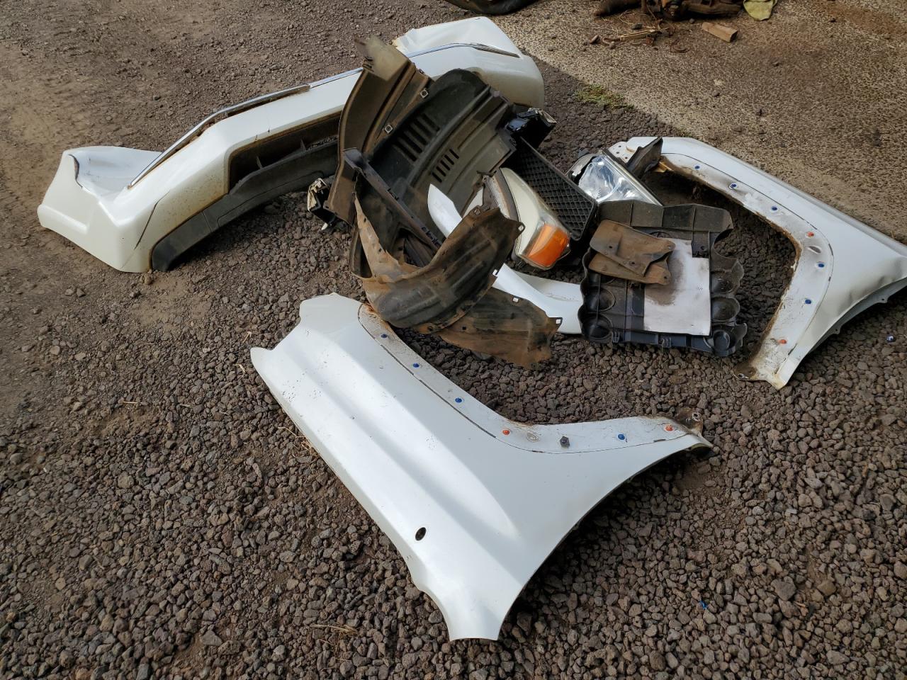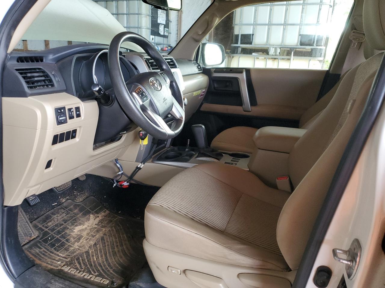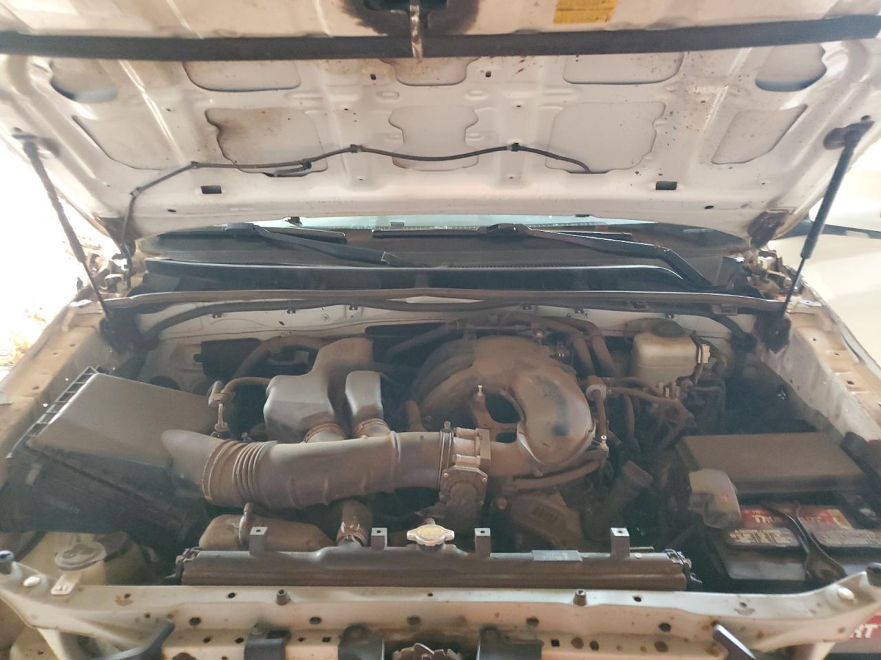 FairThe 2012 Toyota 4Runner SR is white. It has suffered significant front-end and rear-end damage. The front end is heavily damaged, with the bumper, hood, and fenders missing, exposing the engine compartment. The rear end shows damage to the bumper and tailgate. The wheels appear to be in good condition. The interior shows minimal wear and tear. The car starts and runs, verified by the "Run & Drive Verified" status.