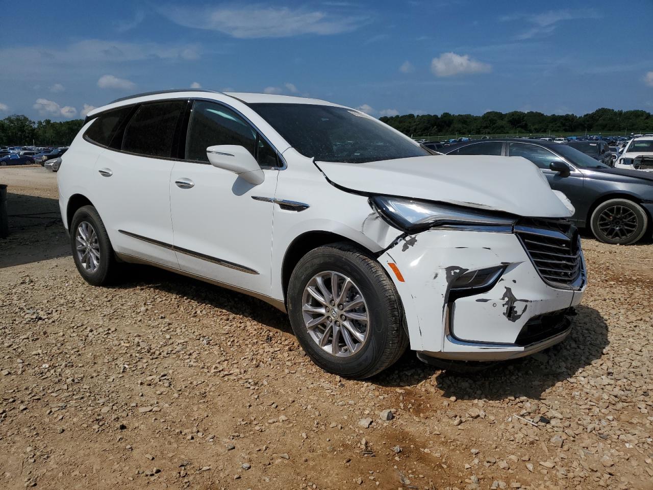 FairThe 2023 Buick Enclave ES is white and shows significant front-end damage. The primary damage is to the front end, with no secondary damage noted. The vehicle's start code is Vehicle Starts, indicating it may still be operational. The wheels appear to be intact. The lights and glasses may have damage. The interior shows signs of airbag deployment and damage but is in reasonable condition. The vehicle is likely drivable, but extensive repairs are needed.