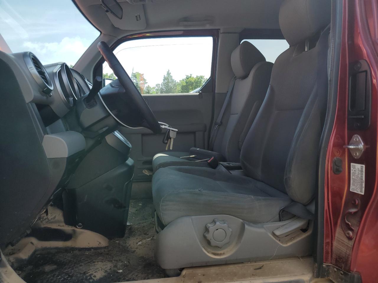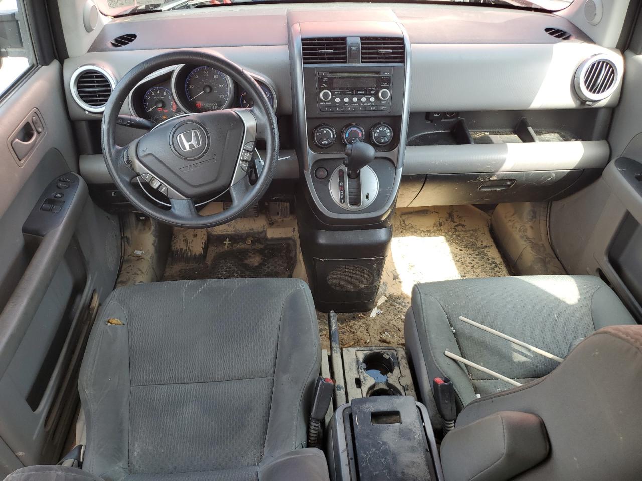The Honda Element EX 2009 has sustained significant damage, primarily from a water/flood event, and secondarily from mechanical failures. The vehicle's body panels have visible damage. The interior condition is poor, indicating considerable wear and possible water damage. The vehicle's overall state is classified as poor.