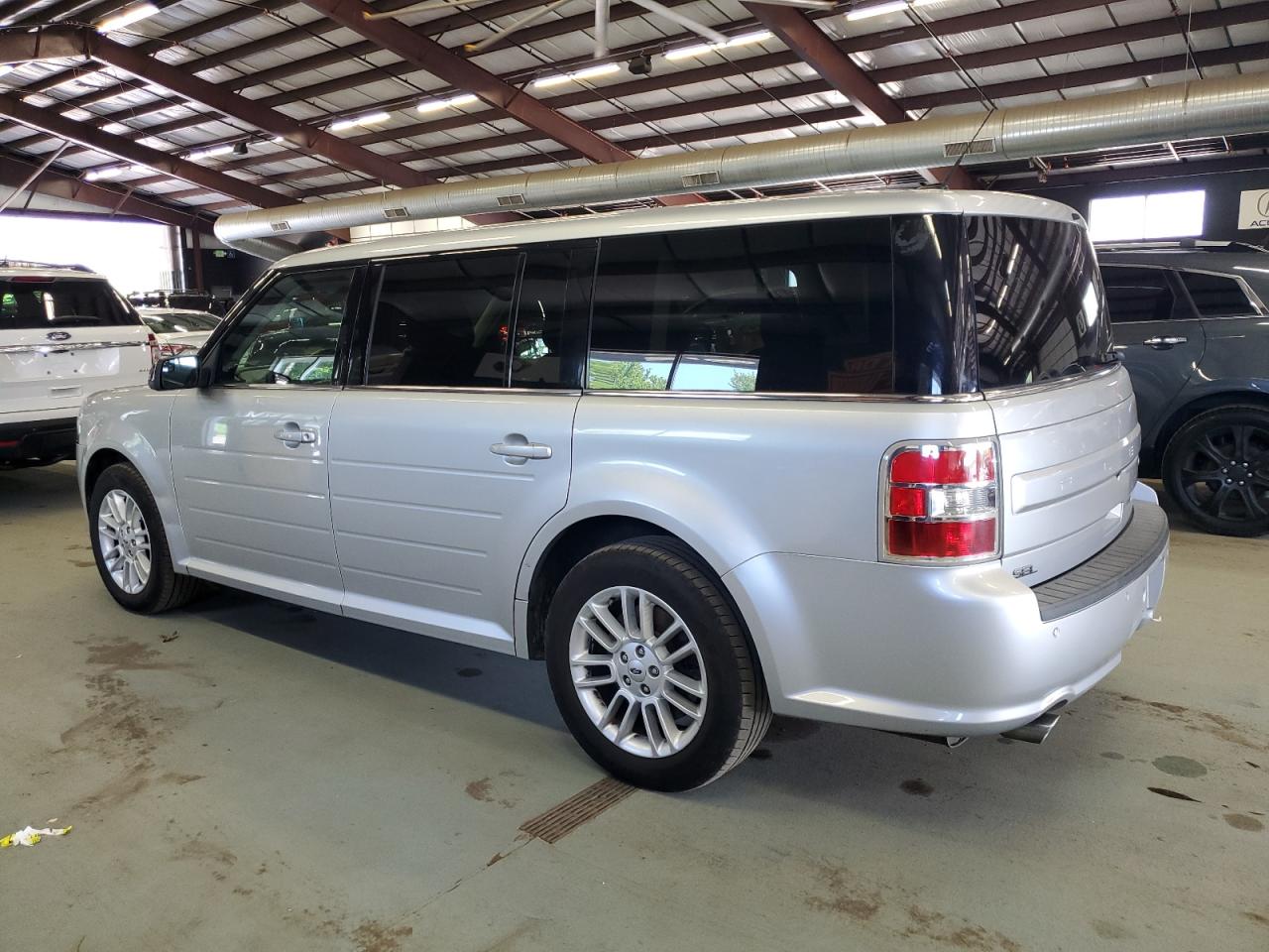 GoodThis 2014 Ford Flex SEL is silver and in good condition overall. It has minor dents and scratches, categorized as body damage, but it is a run and drive vehicle. The interior shows wear consistent with age and mileage. The vehicle's lights and glasses appear to be intact. This car is a good candidate for someone seeking a reliable family car.