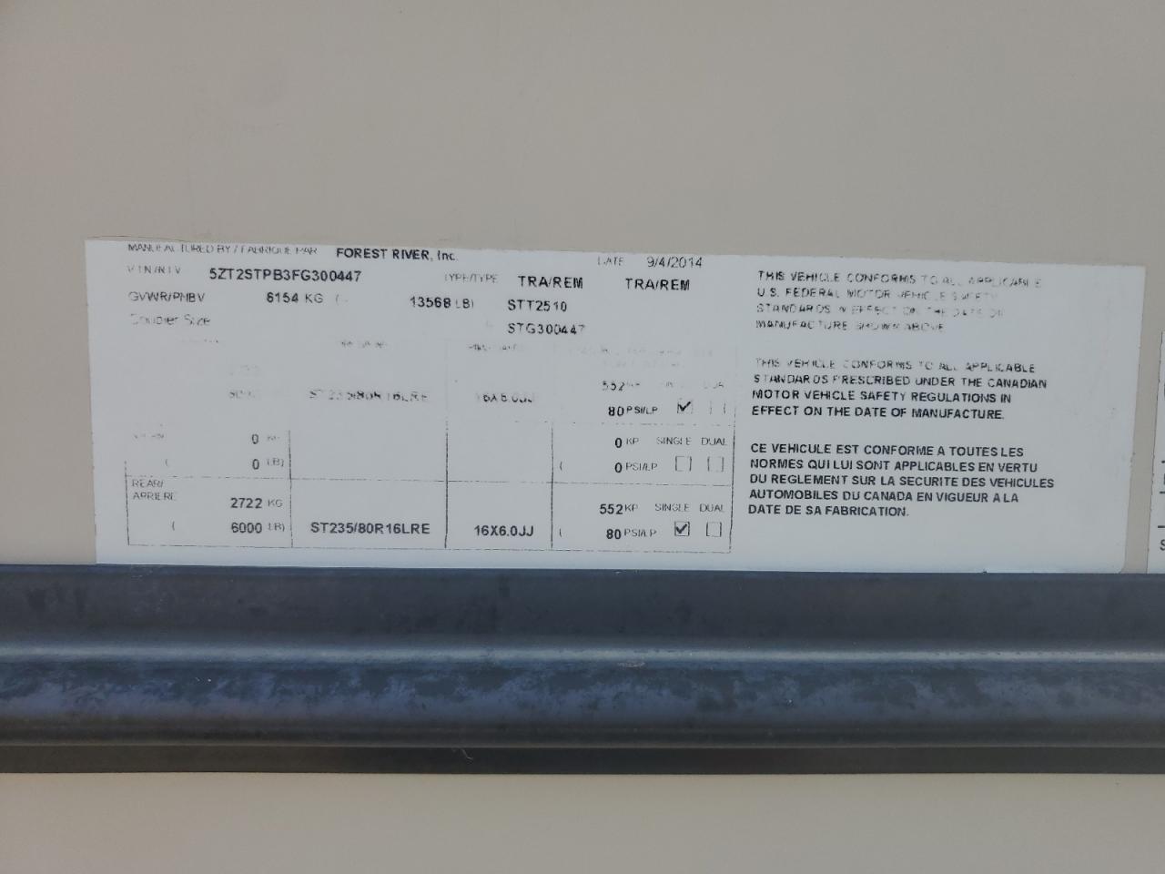 FairThe 2015 FRRV TRAILER in cream has side damage as the primary issue, with no secondary damage. The vehicle starts. The damage is concentrated on the body panels. The wheels, lights, and glasses appear to be in decent condition. The interior shows minor wear and tear. The generator, awning, and slide-outs are present and functional. Summary: Damage and Overall State: - Vehicle Damage Category: Body - Overall Exterior Condition: Fair (due to body damage) - Overall Interior Condition: Good - Overall State: Fair (overall condition considering body damage) Damages: - Side damage. Key Search Terms: FRRV TRAILER 2015, body damage, cream color, repairable RV, drivable trailer, side impact damage.