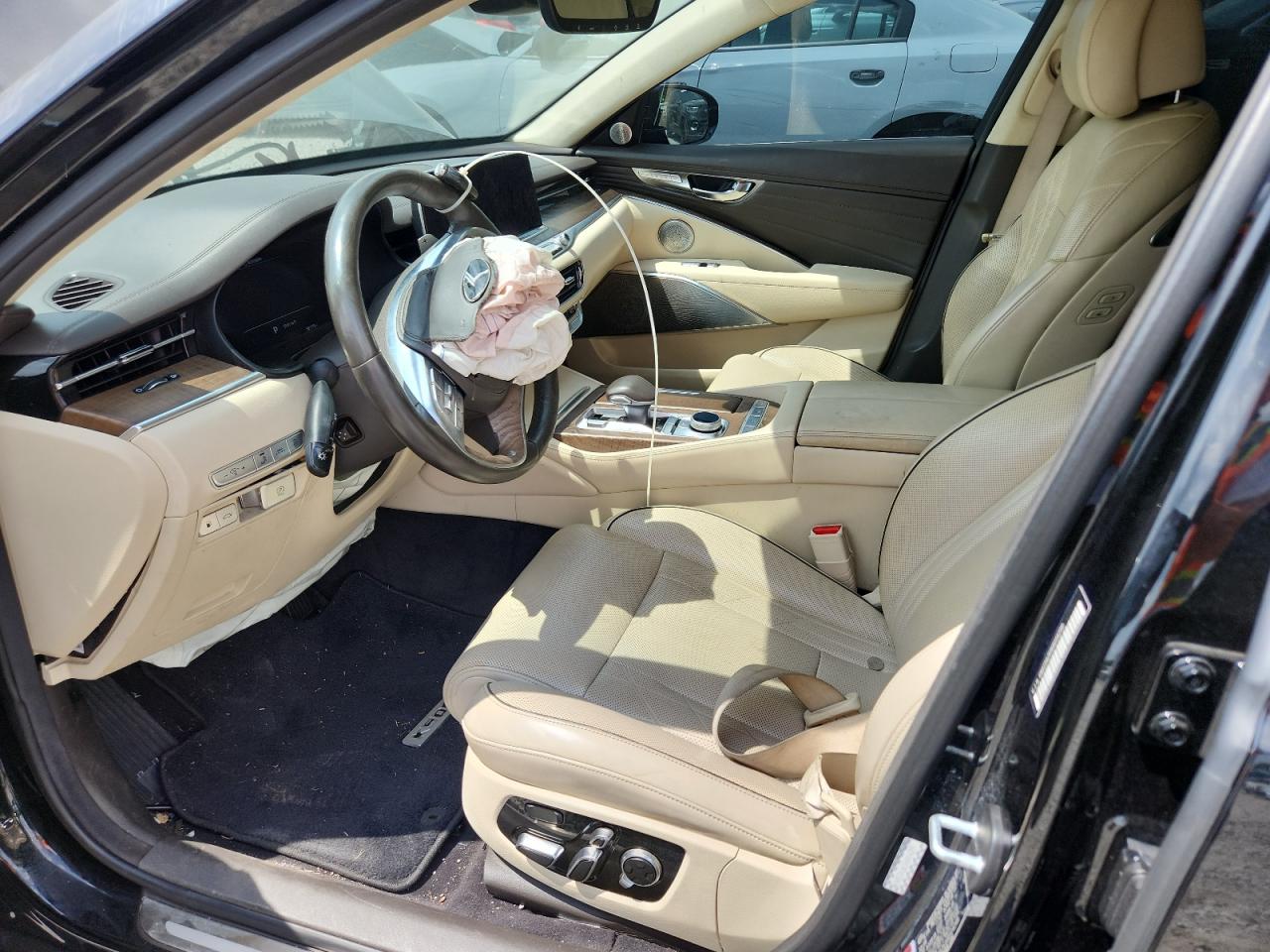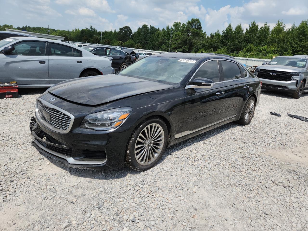 FairThe black 2019 KIA K900 LUXUR exhibits significant front-end damage, categorized as body damage. The vehicle's exterior condition is assessed as fair, reflecting the impact damage. The interior shows visible damage as well. The car is drivable, but requires considerable repair. The airbags have been deployed. The car may be repaired.
