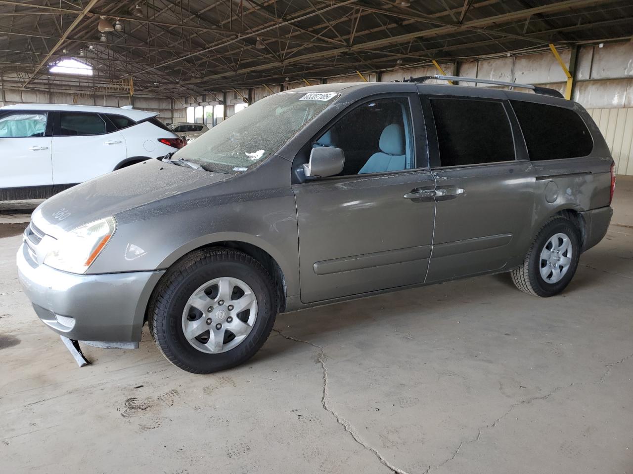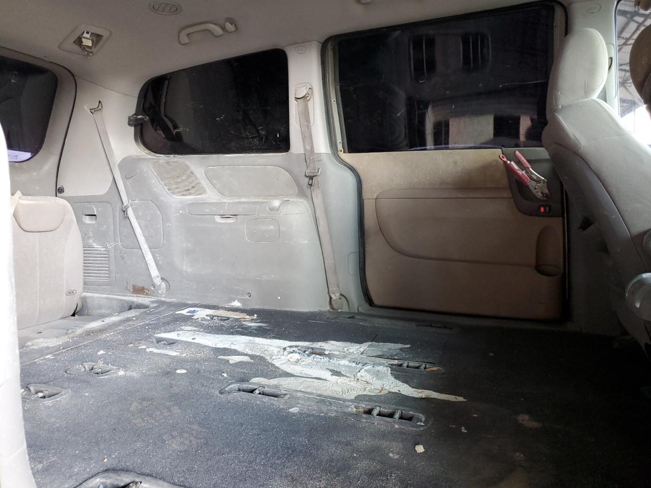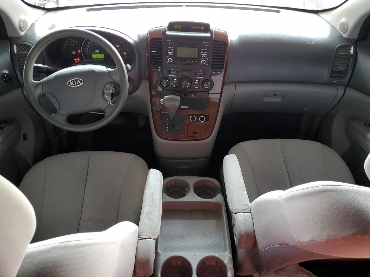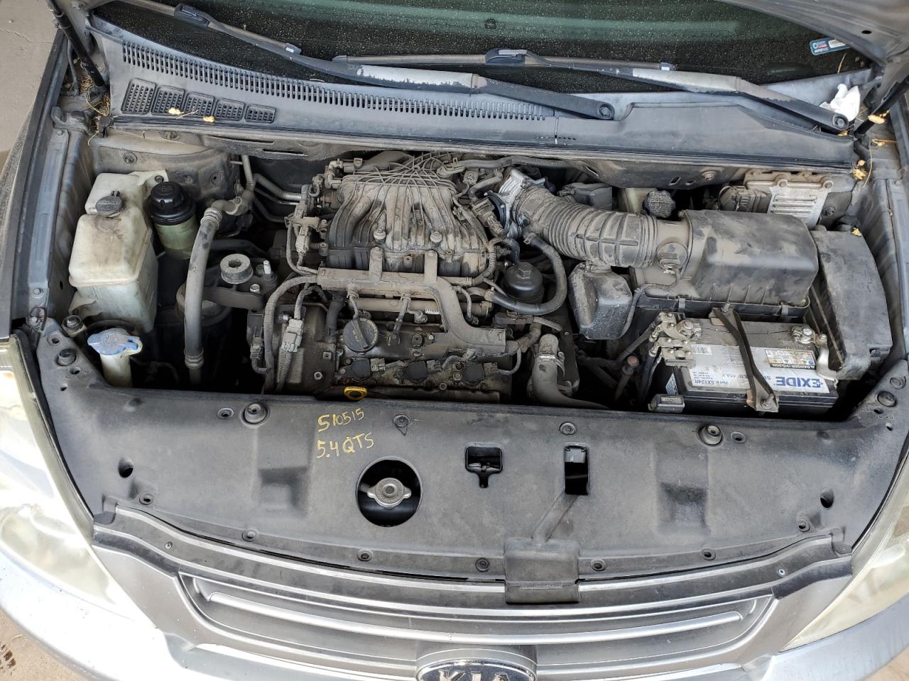 GoodThe 2010 KIA SEDONA LX, a gray minivan, has suffered REAR END damage. The vehicle is a Run & Drive Verified. The exterior shows visible damage with a focus on body panels, wheels appear to be in good condition. The interior displays minor wear and tear. The car's overall state is considered good.