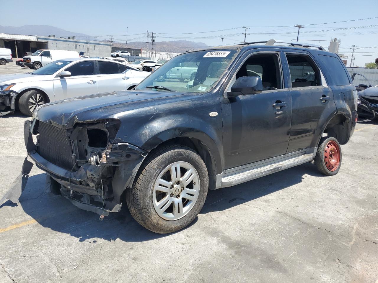 PoorThe 2008 Mercury Mariner is a black SUV with significant damage, primarily due to vandalism. The front end is extensively damaged, with missing components. The wheels are missing on three corners, revealing the suspension components. The vehicle's body panels also show damage. The interior shows signs of wear, with damage to the dashboard and seating. The overall condition of the car is poor, requiring considerable repair. The vehicle is not drivable.
