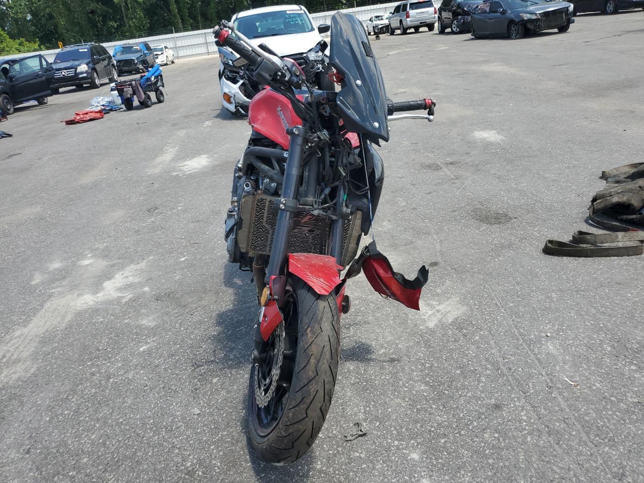 FairThis is a red 2018 KAWASAKI ZR900 motorcycle. It has sustained damage all over the body, with no mechanical issues. The front end has significant damage. The wheels appear to be intact. Based on the damage and overall condition, the motorcycle is likely drivable after repair.