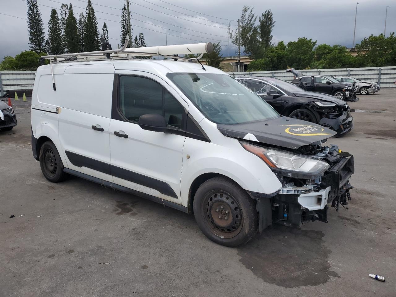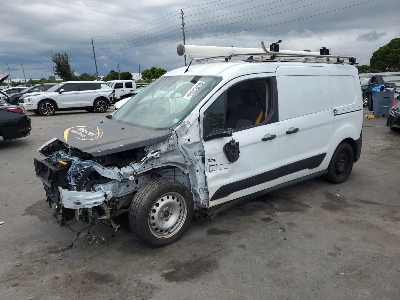 FairThis 2020 Ford Transit Connect has sustained significant front-end and side damage. The white exterior shows substantial impact, particularly in the front, with visible damage to the body panels. The interior appears to have less damage, but overall condition is affected by the exterior's state.
