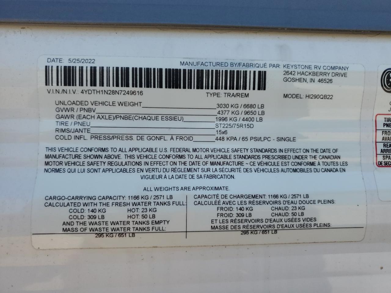 GoodThe 2022 KEYSTONE HIDEOUT appears to have sustained damage primarily to the top and roof. The body is white. The wheels, lights and glasses appear to be in good condition. This RV, a HIDEOUT model from KEYSTONE, shows signs of wear commensurate with its age and use. Damage summary: - TOP/ROOF damage Overall condition: The vehicle is considered to be in overall good condition. Search query optimization: KEYSTONE HIDEOUT 2022, RV damage, Exterior damage, Interior damage, Moderate damage, Repairable RV, HIDEOUT condition, Body damage, Cosmetic damage.