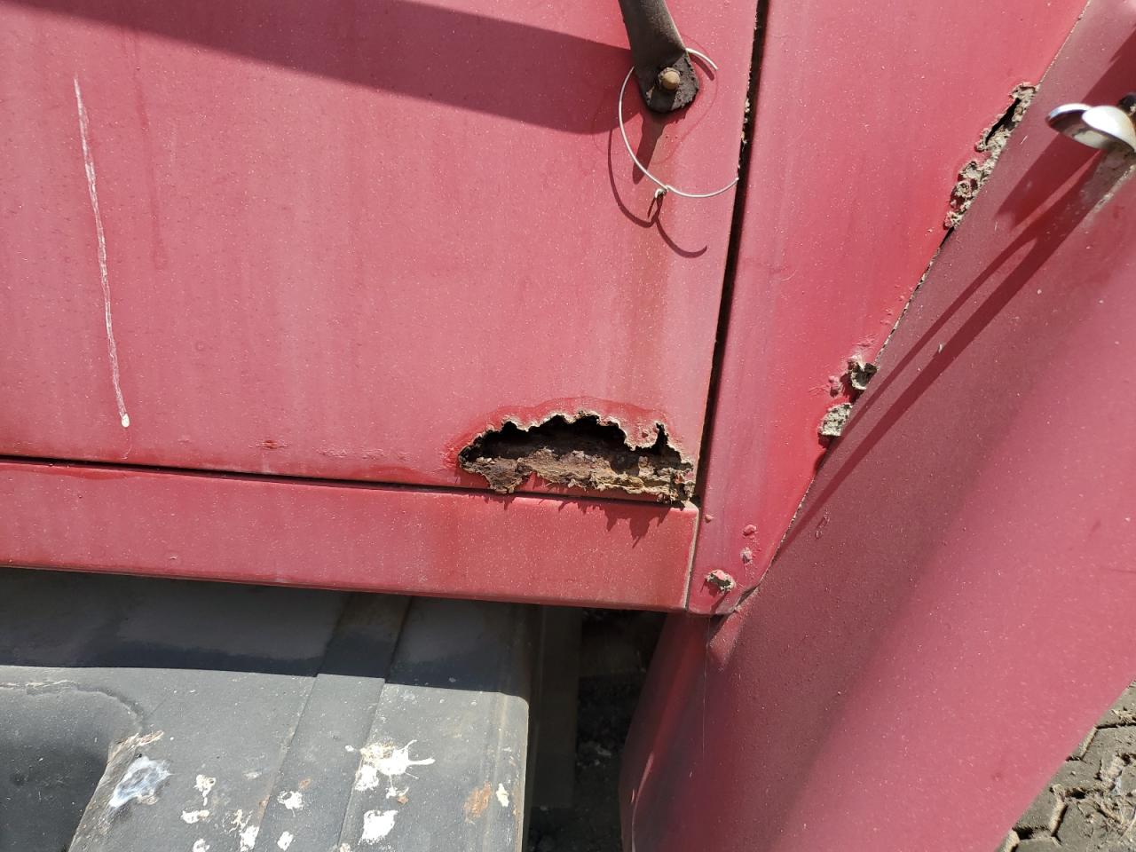 The fire truck exhibits extensive damage. The most significant is mechanical, suggesting engine or transmission problems. There is also significant body damage with rust and panel issues. Interior also shows damage. The wheels have visible damage with flat tire. Overall it need considerable repairs.