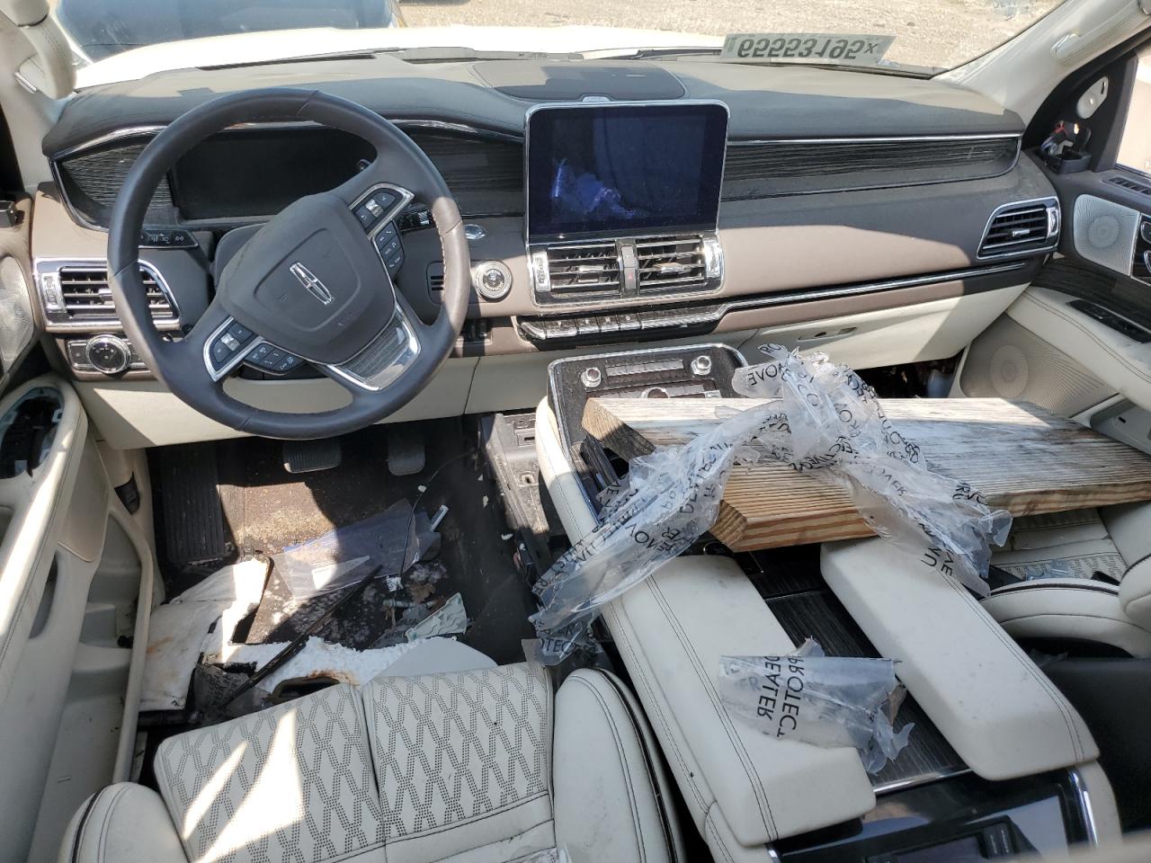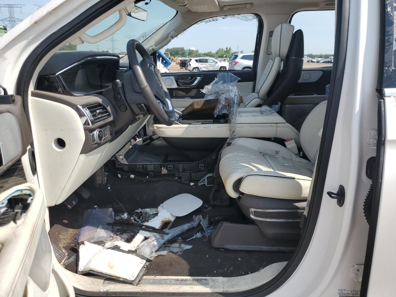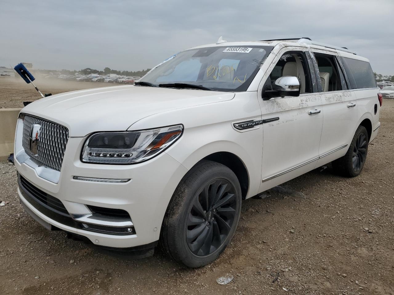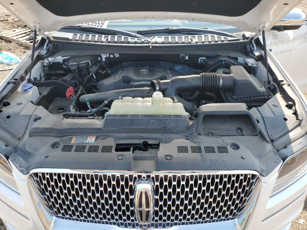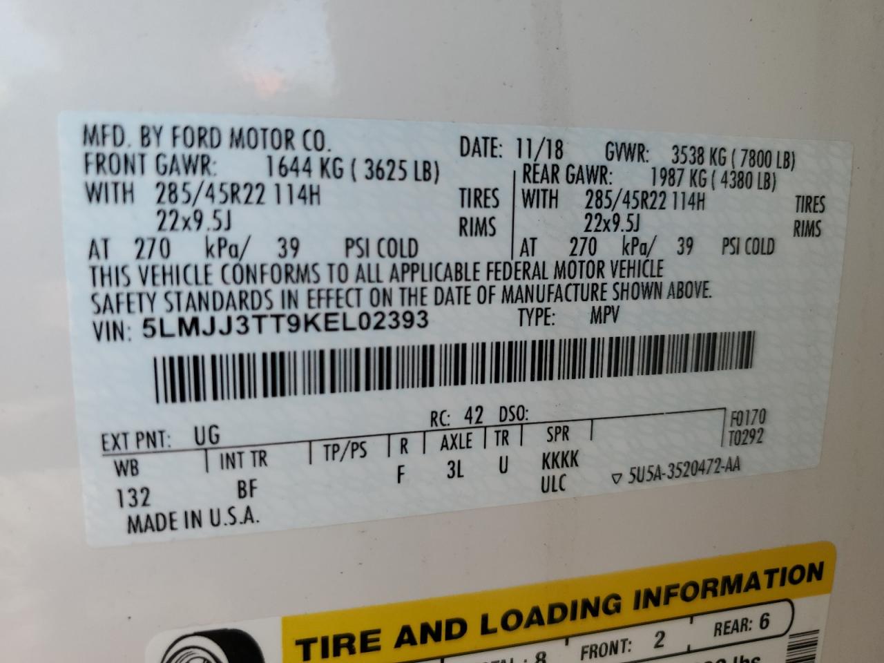 FairThis white 2019 Lincoln Navigator L Black Label has sustained significant water/flood damage, primarily affecting the interior. The exterior shows moderate damage. The wheels appear to be intact, and the lights may require inspection. The vehicle's interior has substantial damage, including potentially deployed airbags and considerable debris. The car's body panels show signs of wear and tear. Overall, the vehicle is in poor condition.