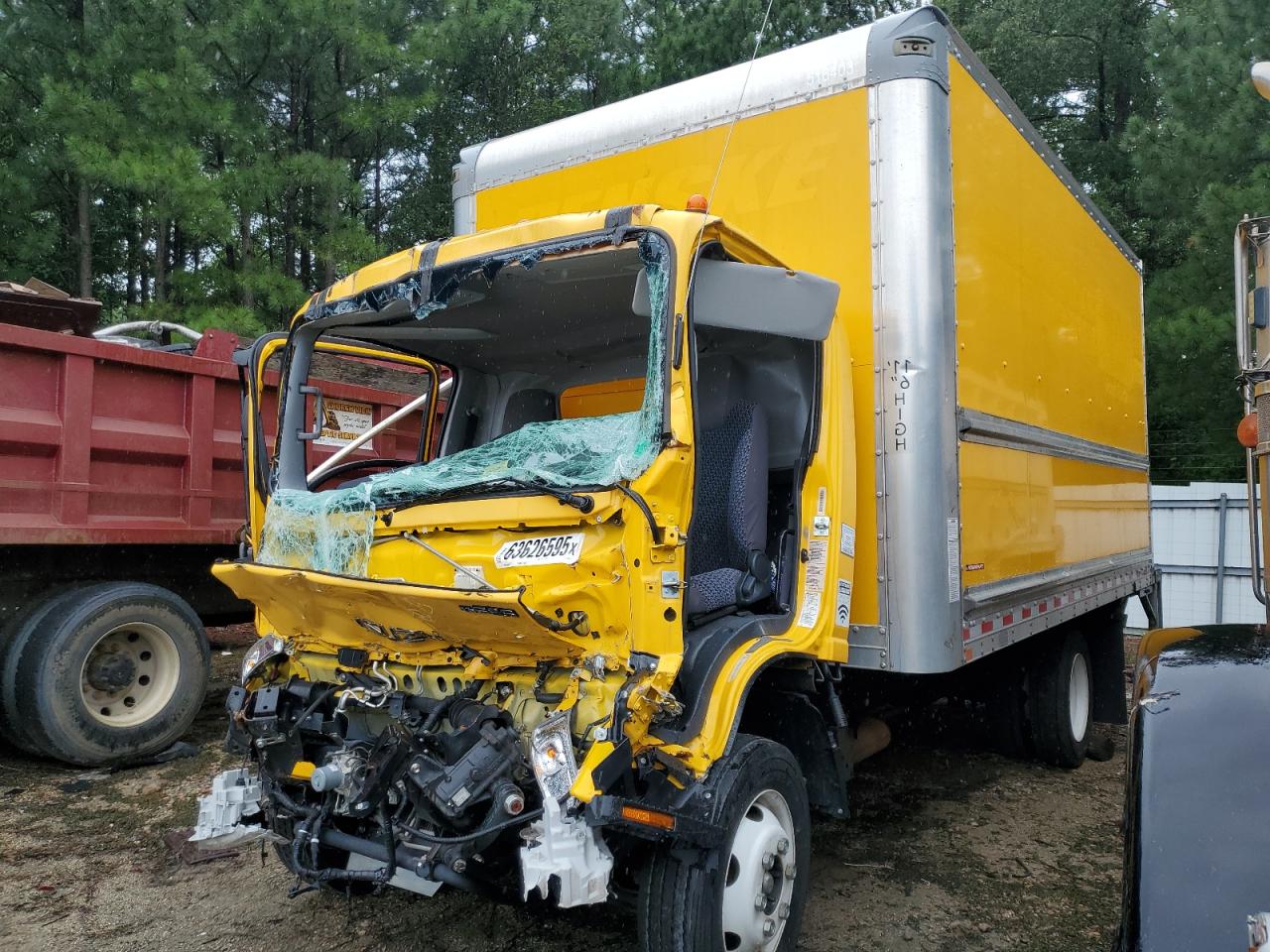 PoorThis is a severely damaged 2023 ISUZU NPR HD box truck. The vehicle exhibits extensive front-end damage, with significant impact to the body, including the cab area. The windshield is shattered, and there's substantial damage to the front structure and components. The yellow paint is marred. The interior is also heavily damaged, with visible damage to the dashboard, seats, and potentially other interior components. The truck is likely not drivable in its current state. This car started with a default code and is suitable for parts or rebuild.
