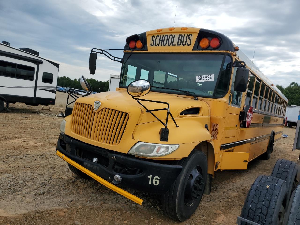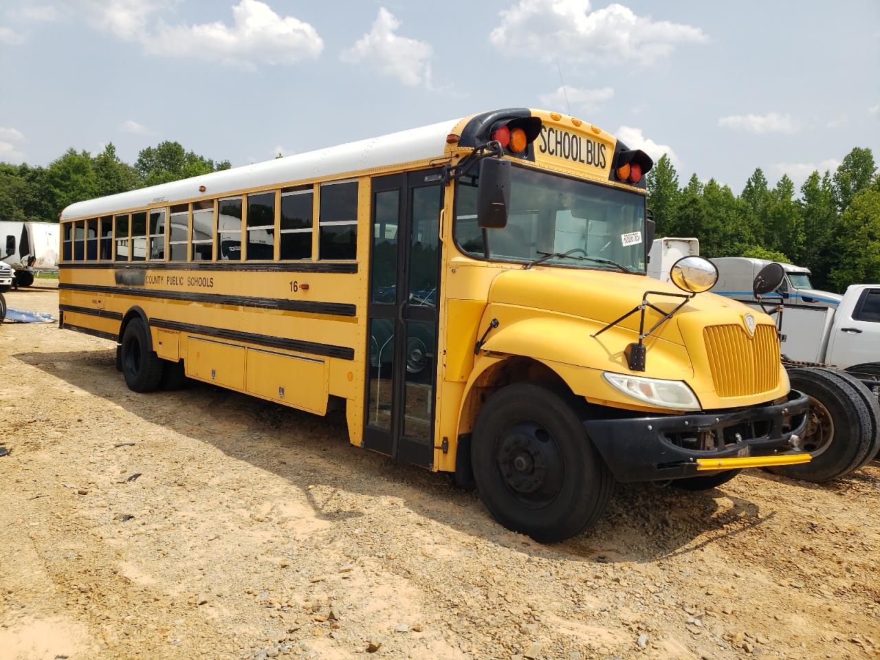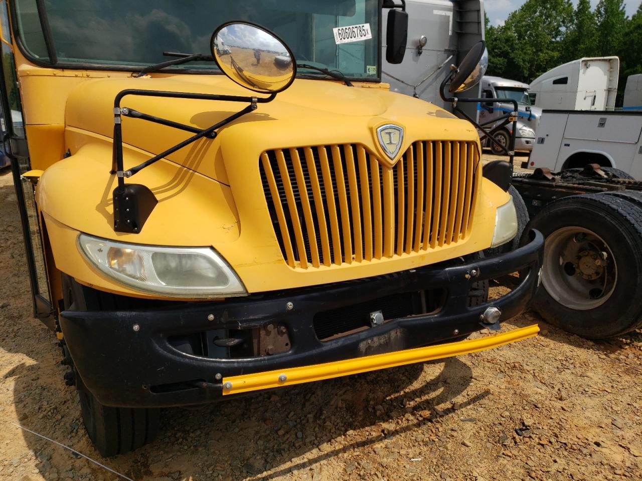 The 2009 IC Corporation 3000 CE school bus is yellow and has a DEFAULT start code. The primary damage is to the front end, with secondary minor dents and scratches. The bus appears to be drivable despite the damage.
