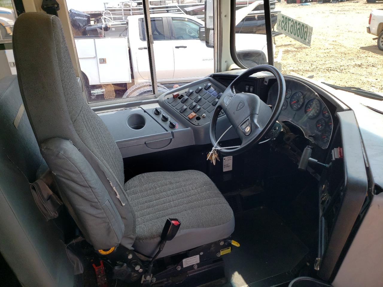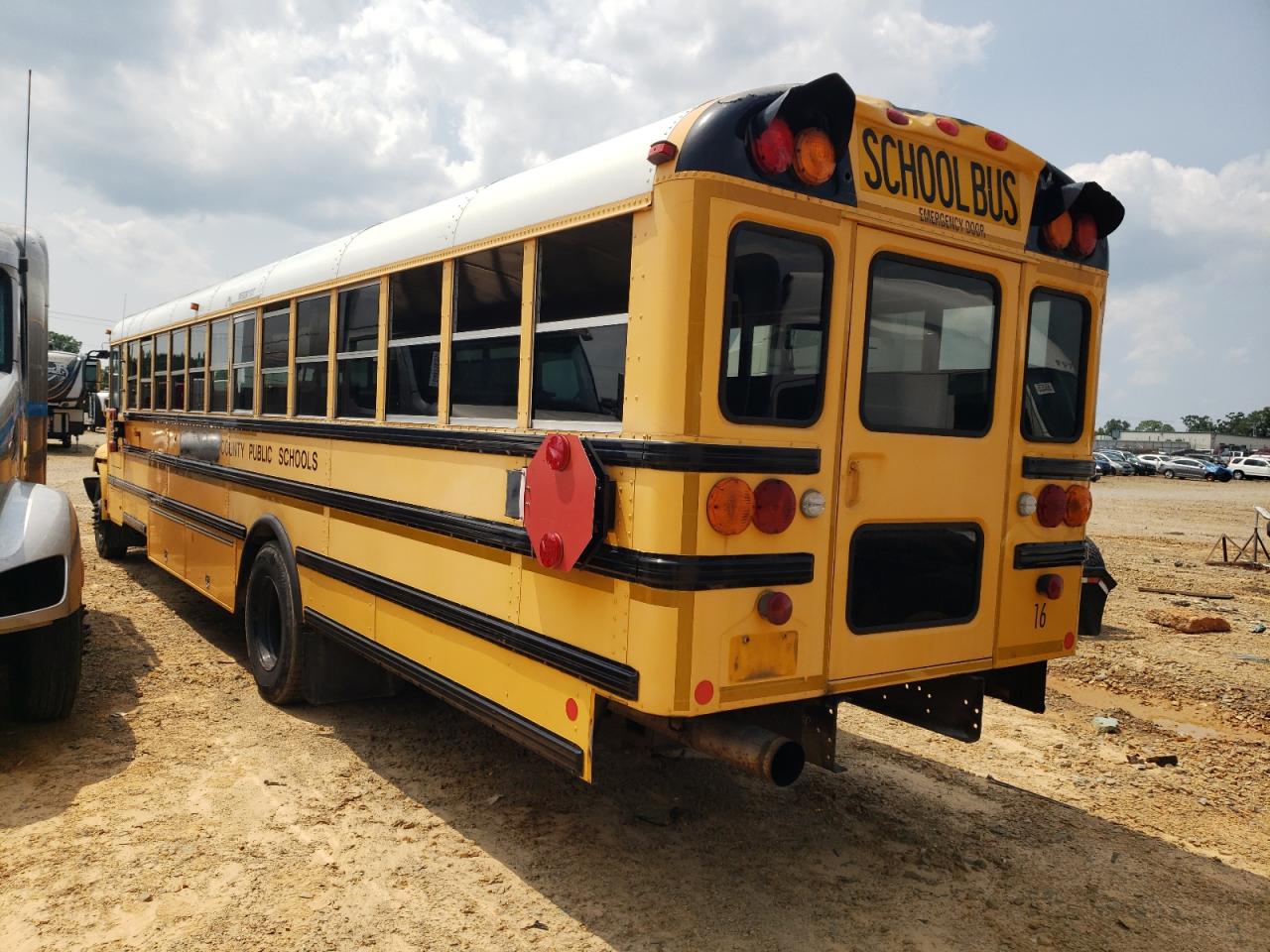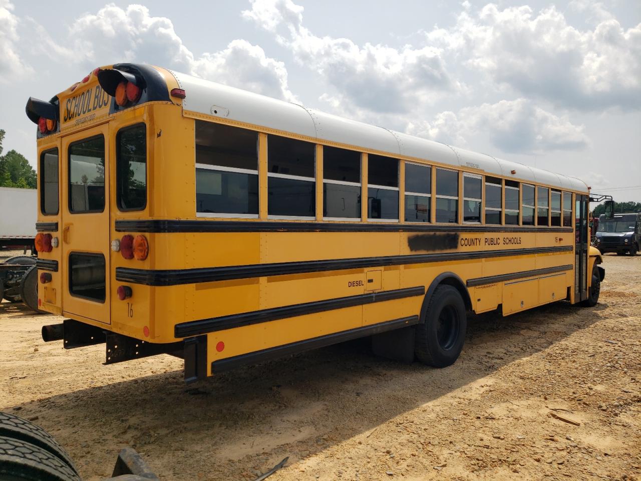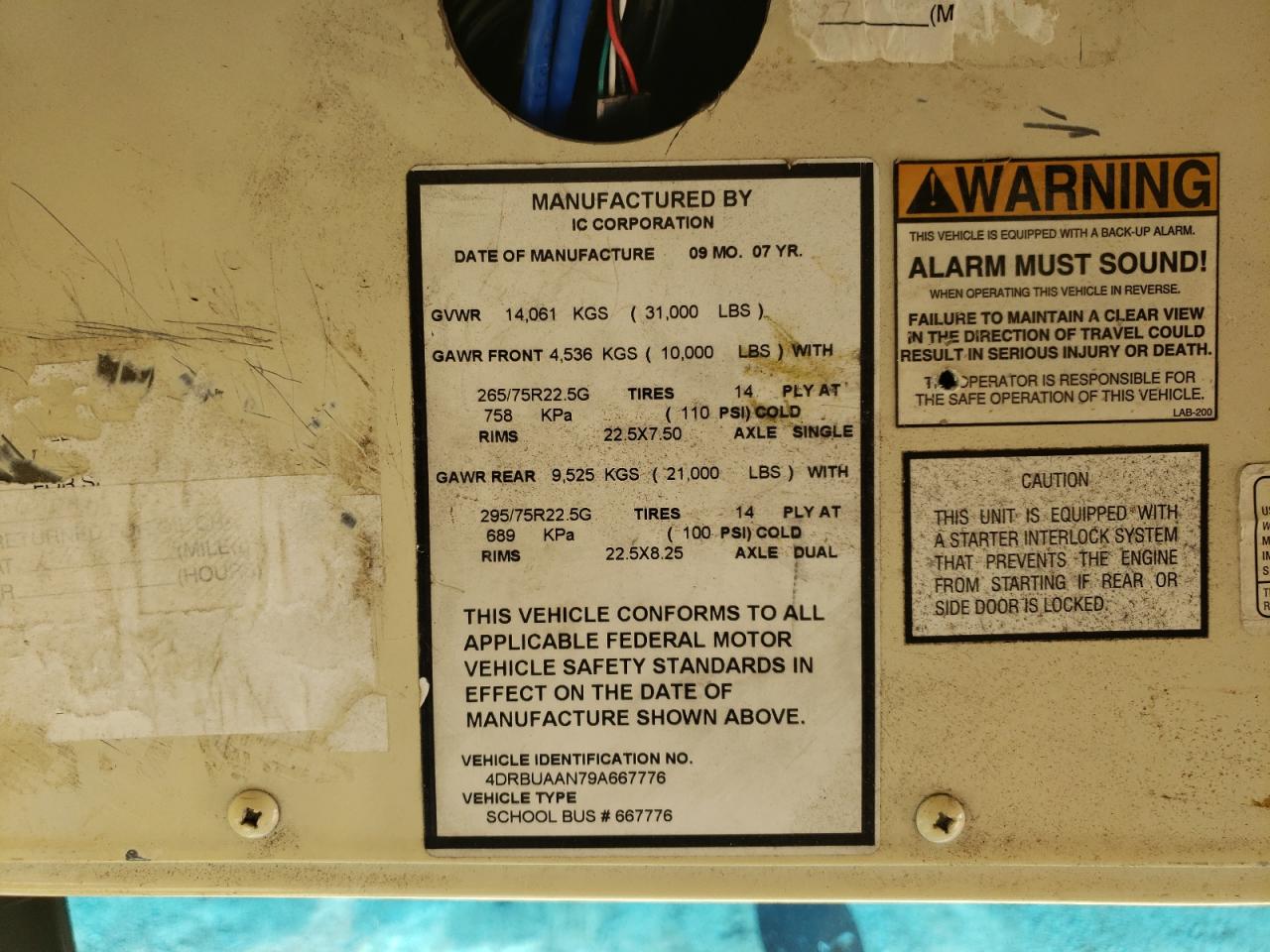 The 2009 IC Corporation 3000 CE school bus is yellow and has a DEFAULT start code. The primary damage is to the front end, with secondary minor dents and scratches. The bus appears to be drivable despite the damage.