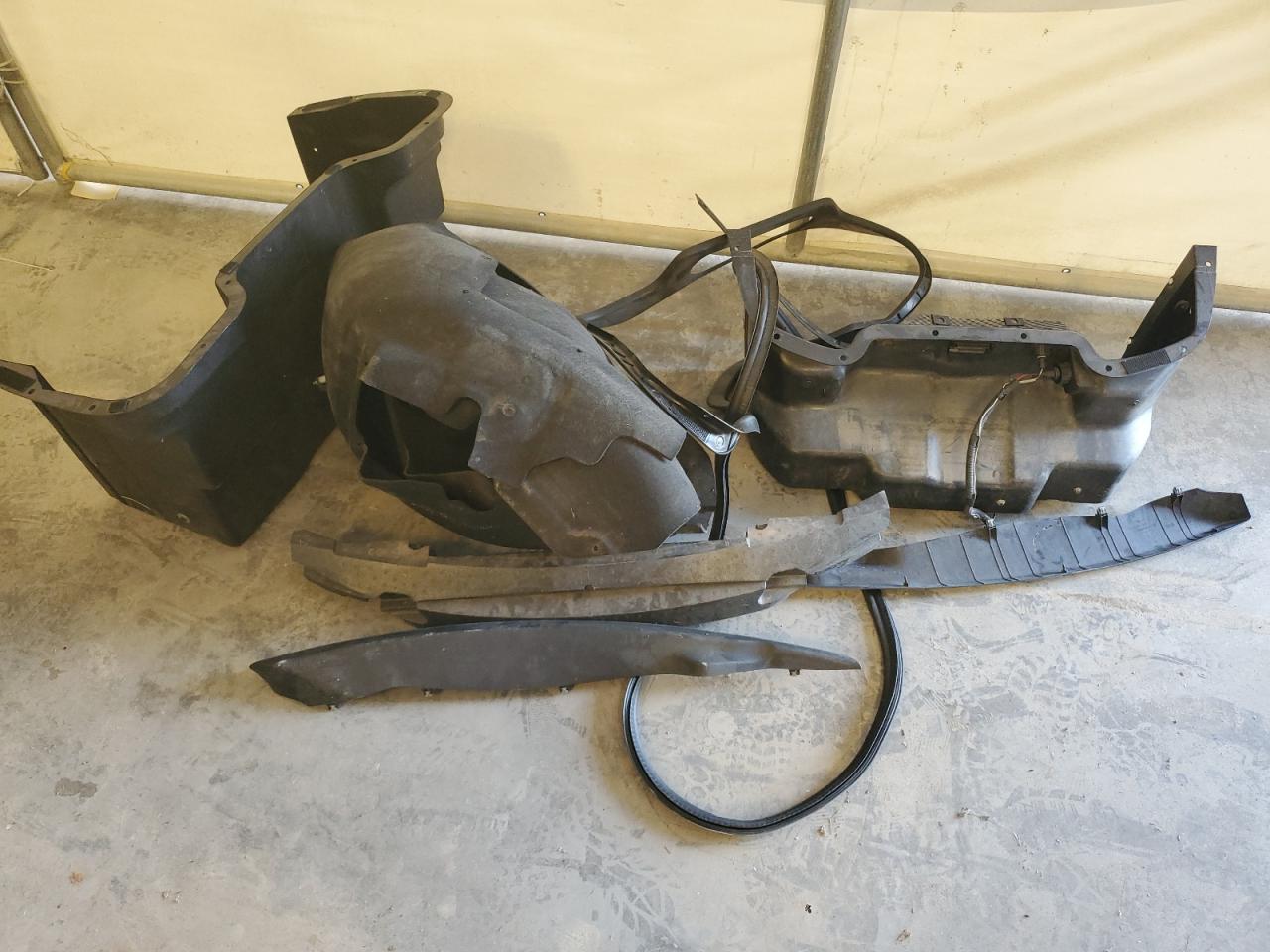 The front end and side of the vehicle have suffered damage. Specific damages include the front bumper, fenders, and potentially the lights. The side panels also show signs of impact.