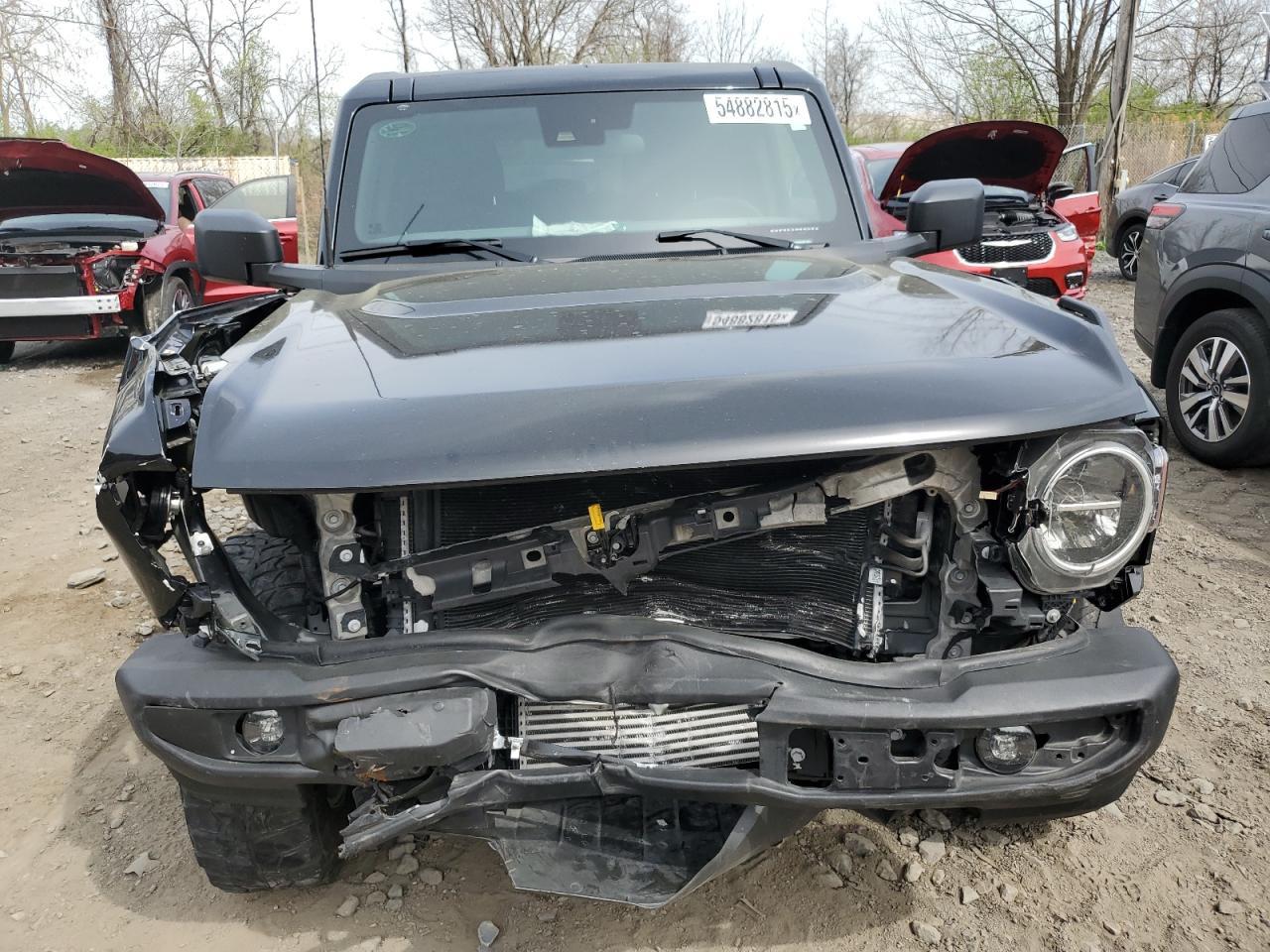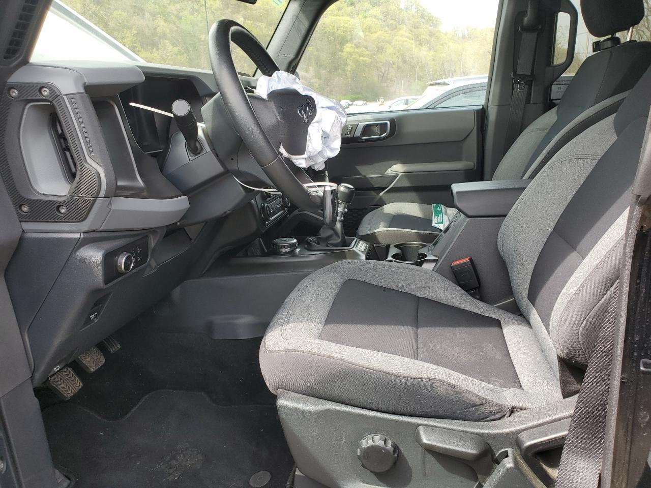 FairThe 2023 FORD BRONCO BAS, is black and appears to have sustained front-end damage. The vehicle is listed as Run & Drive Verified. The exterior exhibits moderate damage, mainly concentrated at the front. The interior shows minor wear and tear. The car is drivable but requires repairs.