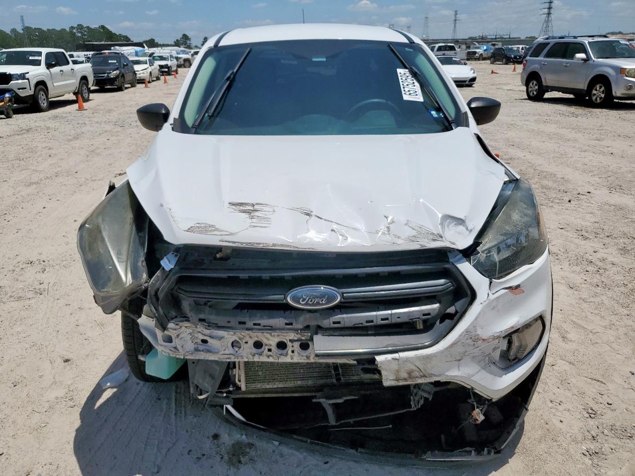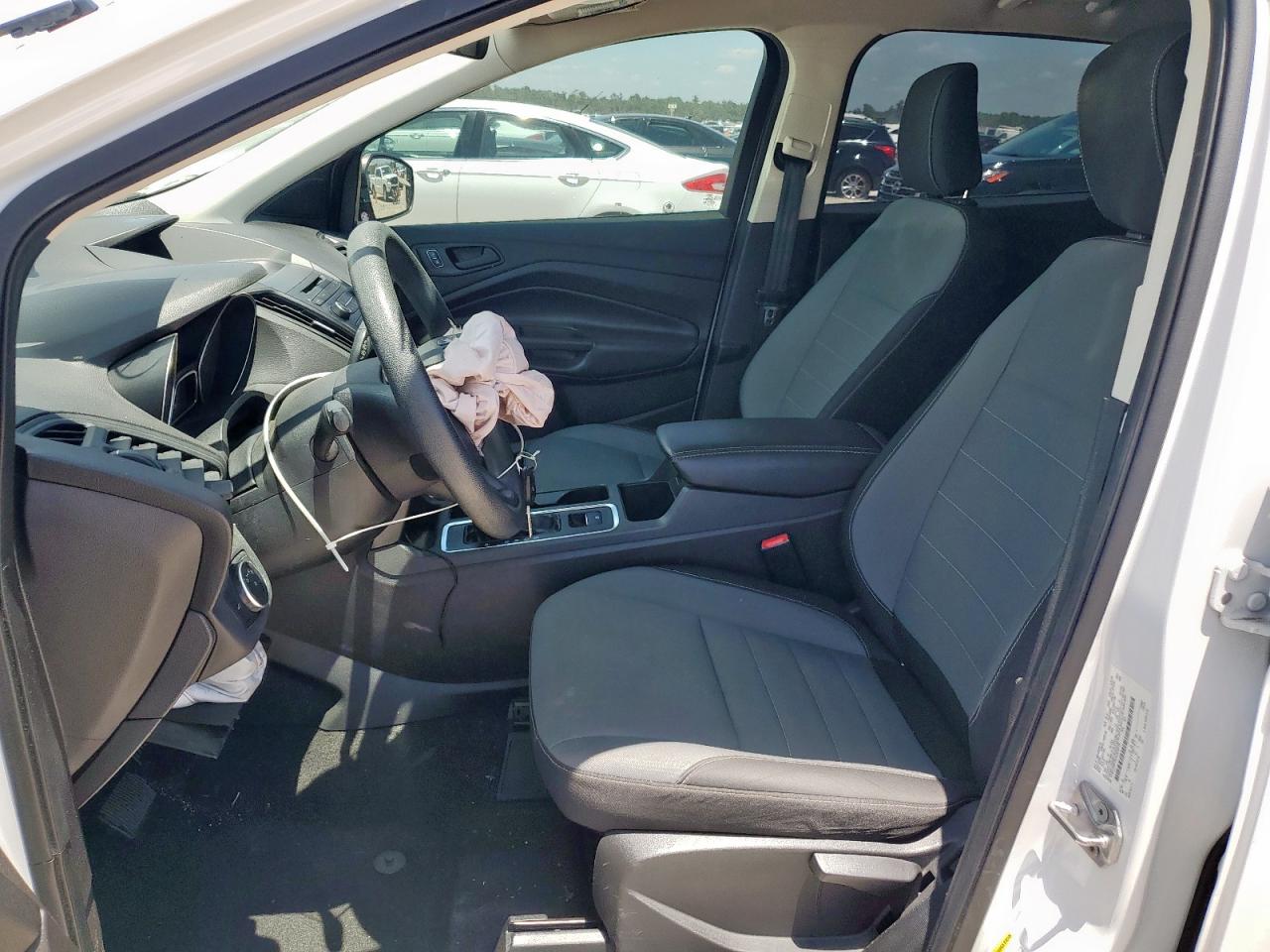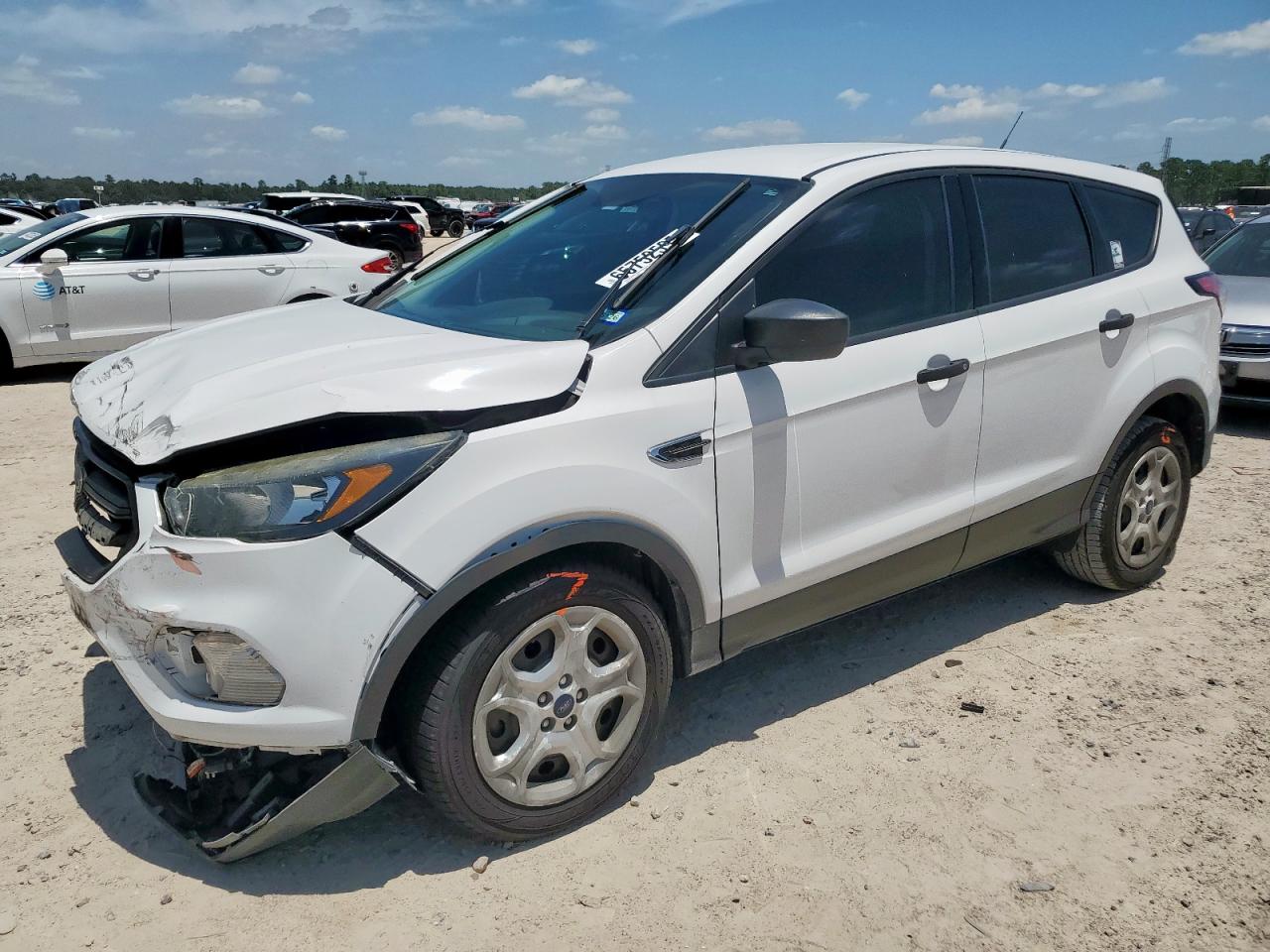 FairThis is a 2018 Ford Escape S with front-end damage and no mechanical issues. The car is white and has a Run & Drive Verified start code. The exterior shows moderate damage, primarily to the front. The interior has damage as well. The airbags may have been deployed, and it appears the vehicle requires considerable repair but is drivable.