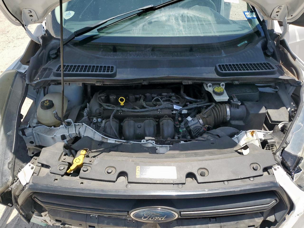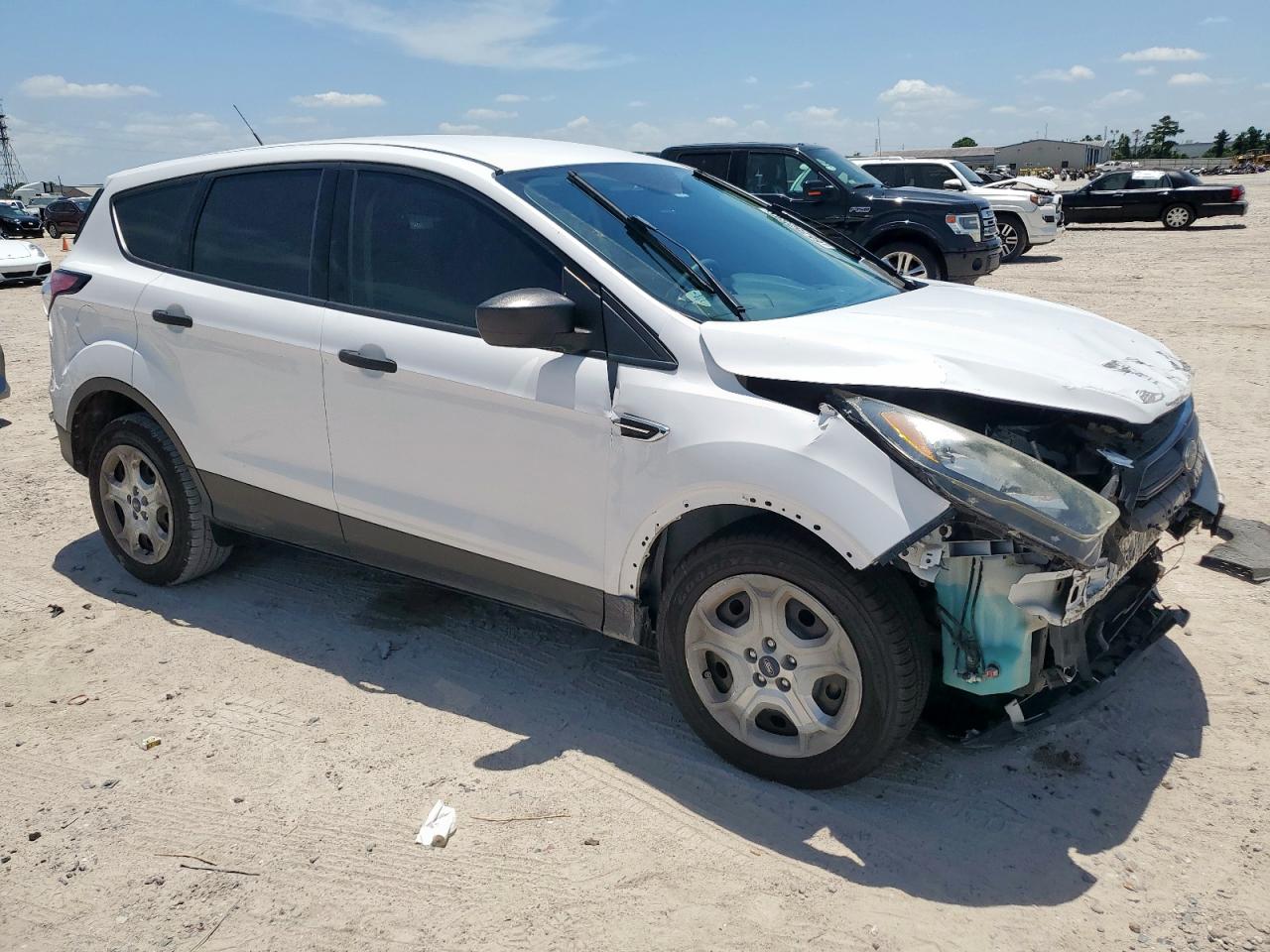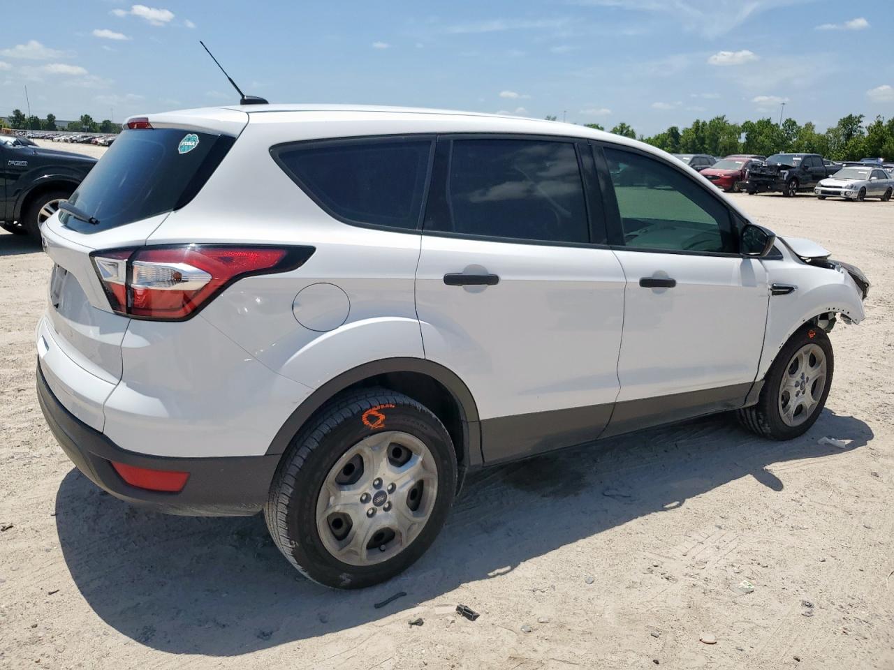 FairThis is a 2018 Ford Escape S with front-end damage and no mechanical issues. The car is white and has a Run & Drive Verified start code. The exterior shows moderate damage, primarily to the front. The interior has damage as well. The airbags may have been deployed, and it appears the vehicle requires considerable repair but is drivable.