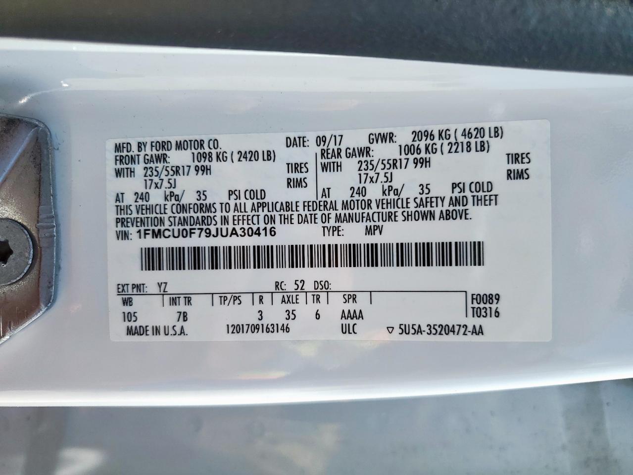 1FMCU0F79JUA30416Final Bid