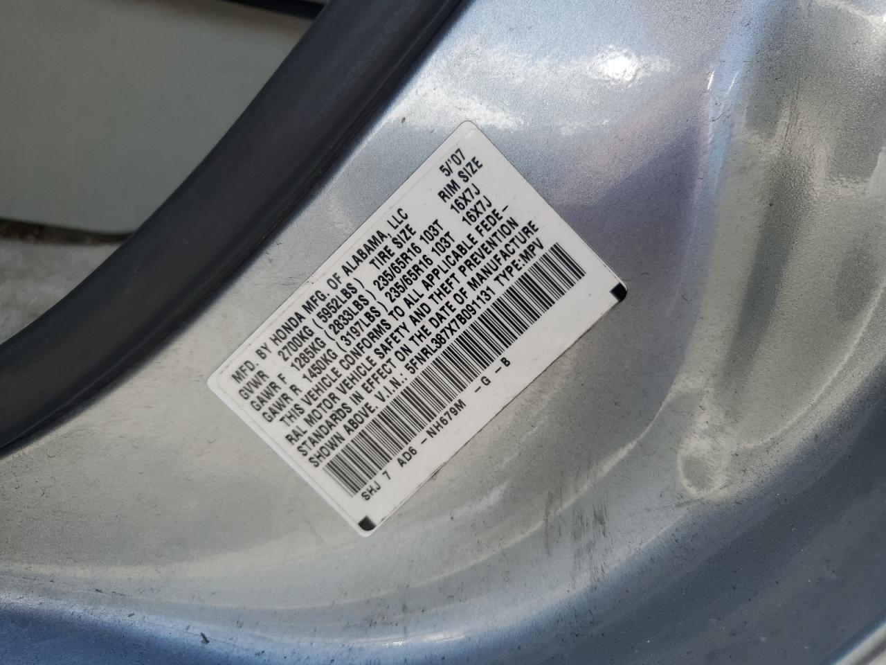 5FNRL387X7B091131Final Bid