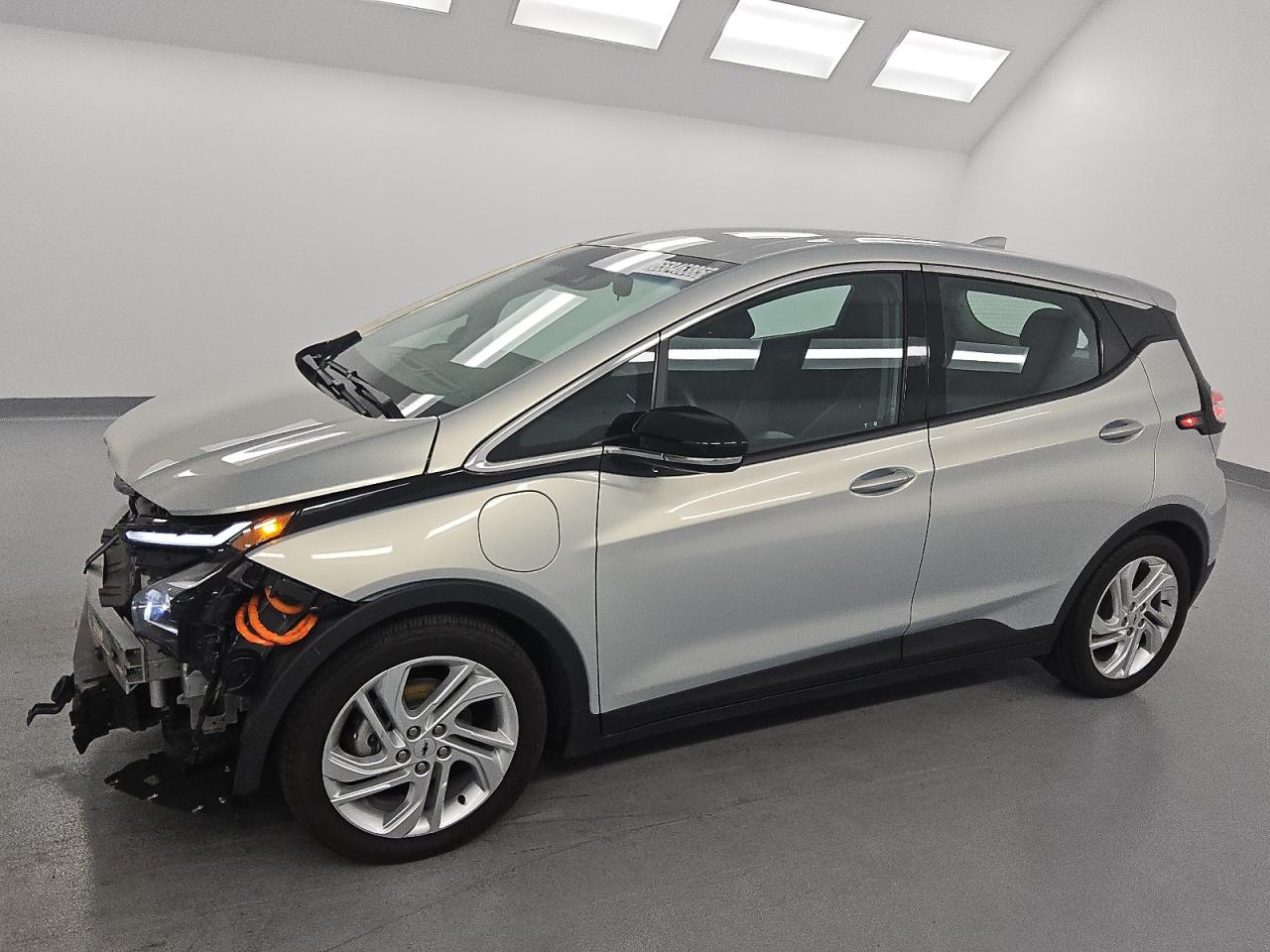 FairThe CHEVROLET BOLT EV 1L 2023 is silver with front end damage, classified as Body damage. The car is Run & Drive Verified. The damage is concentrated on the front end, including the lights. The interior appears to be in good condition. The vehicle is drivable despite the front-end damage. The car has visible front end damage, with potential for replacement parts. The vehicle shows signs of moderate damage, requiring repair before the car can be considered in good condition.