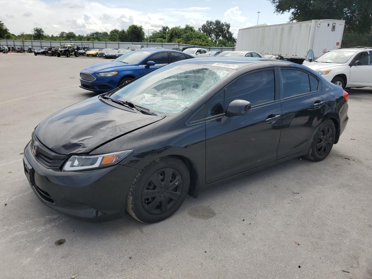 FairThis is a black 2012 Honda Civic LX with front-end damage. It has a Run & Drive Verified status. The vehicle exhibits damage to the front end, with potential issues with the lights and windshield. The interior shows signs of wear and tear.