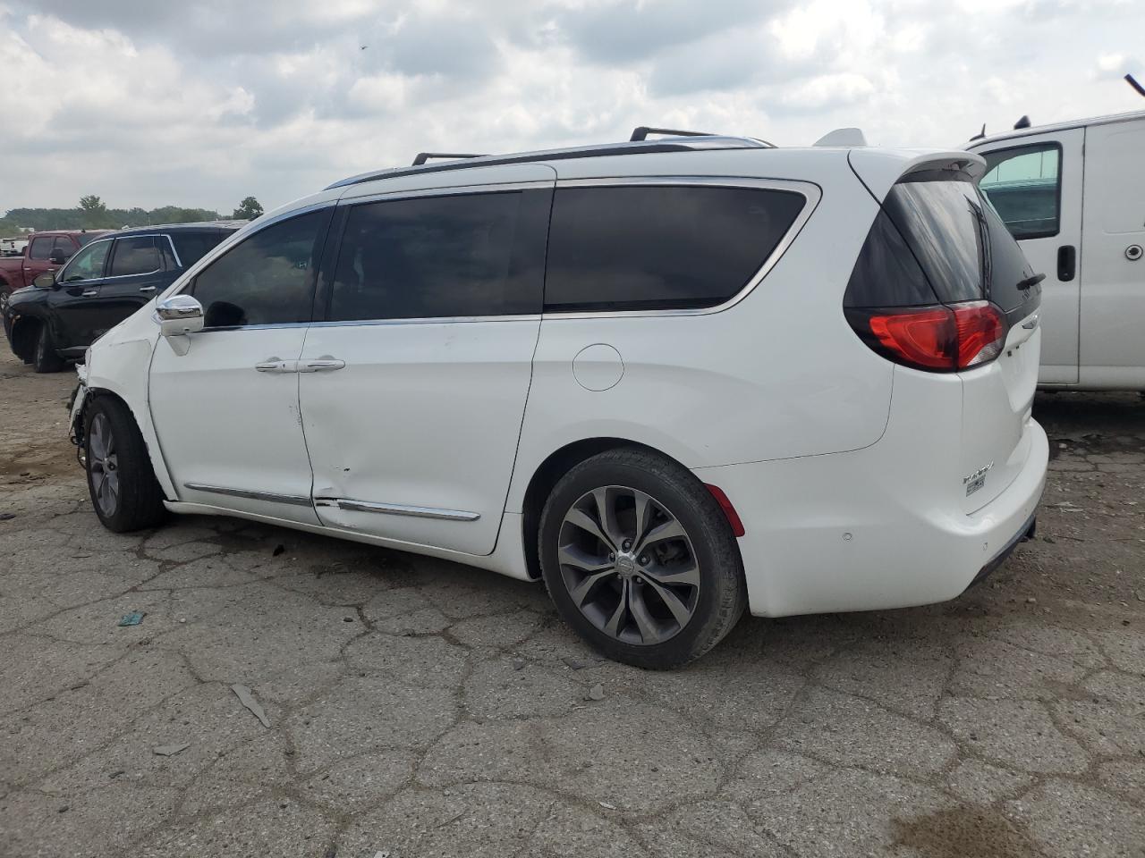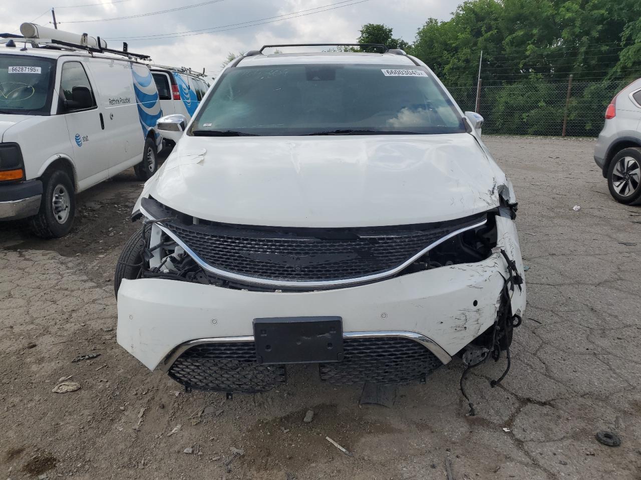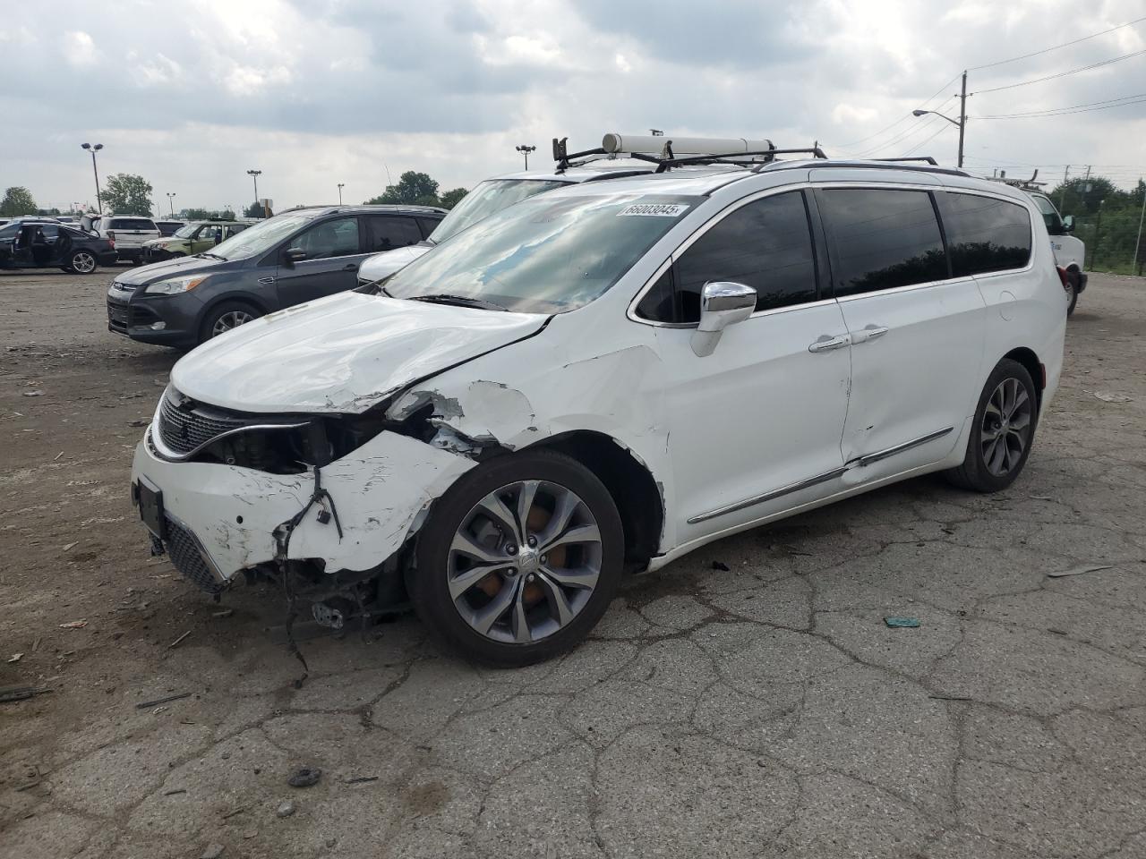 FairThis is a 2017 CHRYSLER PACIFICA L. The primary damage is to the front end with secondary damage to the side of the vehicle. The car is white. The vehicle's damage category is 'Body', and it is considered drivable. The car shows significant front-end damage, including a crushed hood, damaged bumper, and affected lights. The side panels also show damage. The wheels appear intact. The interior shows normal wear and tear, with no immediate indications of major damage. However, airbags status are unknown. Overall, the car is in fair condition, requiring repairs to body components.