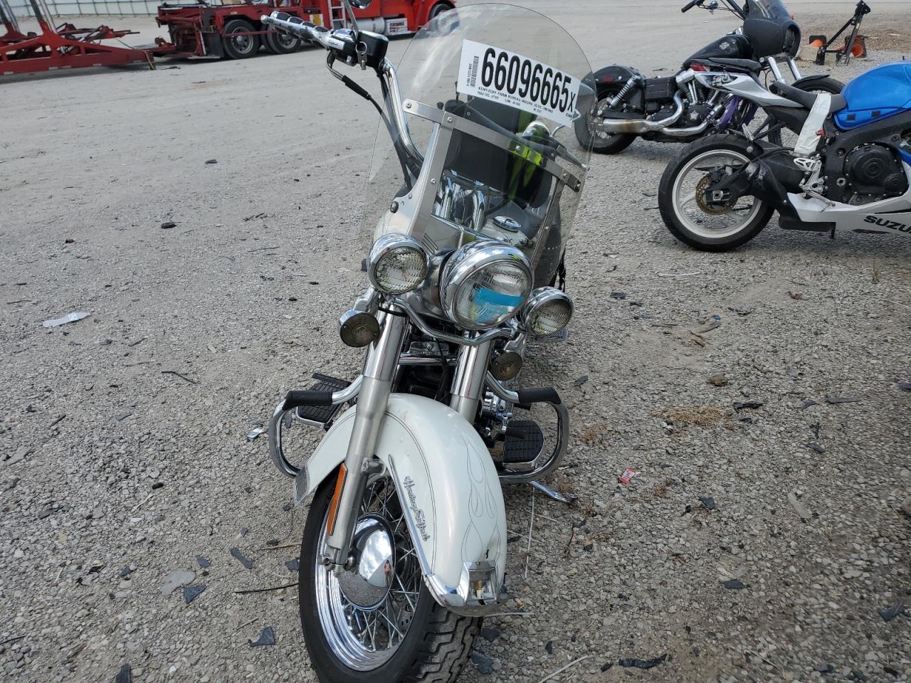 FairThis 2001 HARLEY-DAVIDSON SOFTAIL shows signs of moderate cosmetic and body damage, primarily to the front end with minor dents and scratches across the exterior. The white paint exhibits wear and tear, but the vehicle appears drivable. Interior condition is good, with minor wear and tear. The motorcycle comes with a run and drive verification.