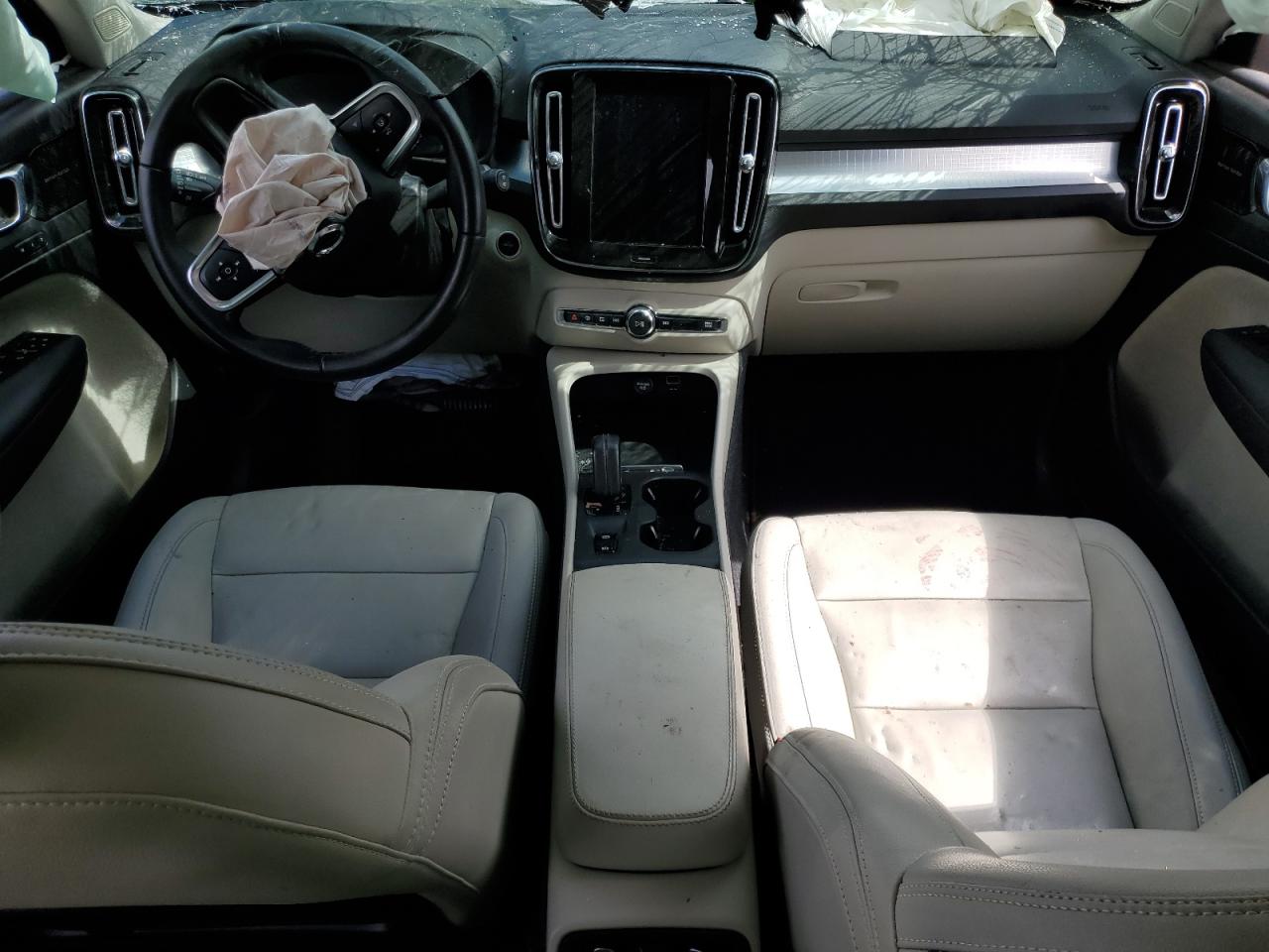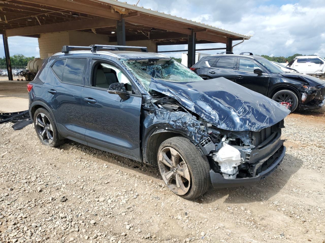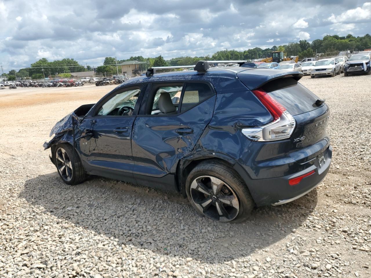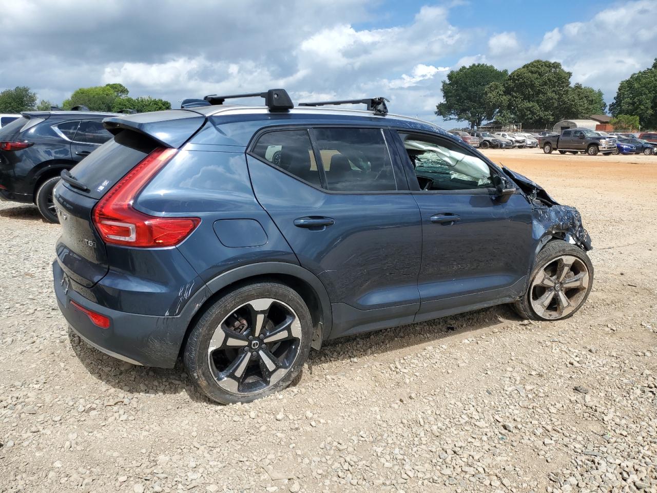 PoorThe 2021 VOLVO XC40 T5 MO has sustained significant rollover damage, presenting extensive body panel damage and compromised structural integrity. The blue exterior shows considerable impact across multiple angles. The interior reveals deployed airbags and significant damage to the dashboard and other components. The vehicle is unlikely to be drivable in its current condition.