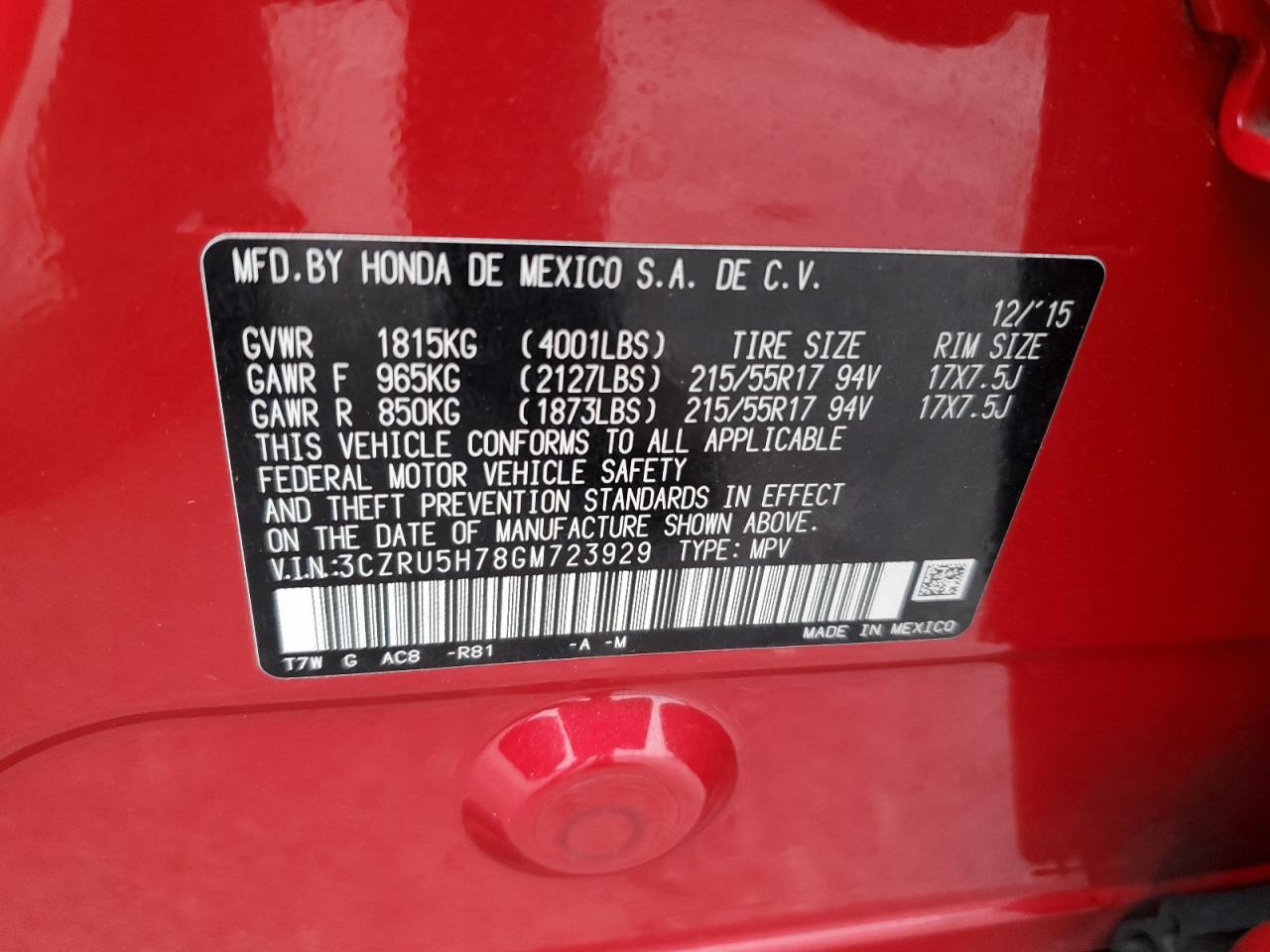 FairThis red 2016 Honda HR-V EX-L shows signs of damage. The primary damage is to the rear end, while there are no secondary damages reported. The vehicle starts. The car presents body damage, specifically at the rear with some damage on the side. The interior appears to be in good condition. This HR-V requires some repairs to be in good condition.