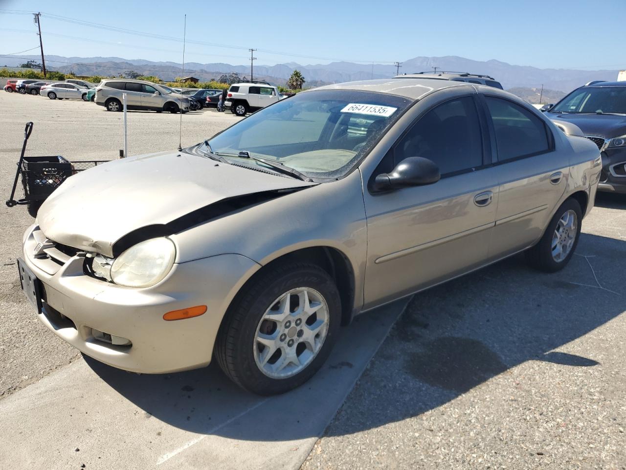 FairThis is a 2002 DODGE NEON ES, tan in color. It's a Run & Drive Verified vehicle, with damage concentrated on the front end. The vehicle's exterior shows moderate damage, and the interior has visible wear. The damage includes front end and body. The wheels, lights, and glass appear to be intact but the overall state is fair and require repair.