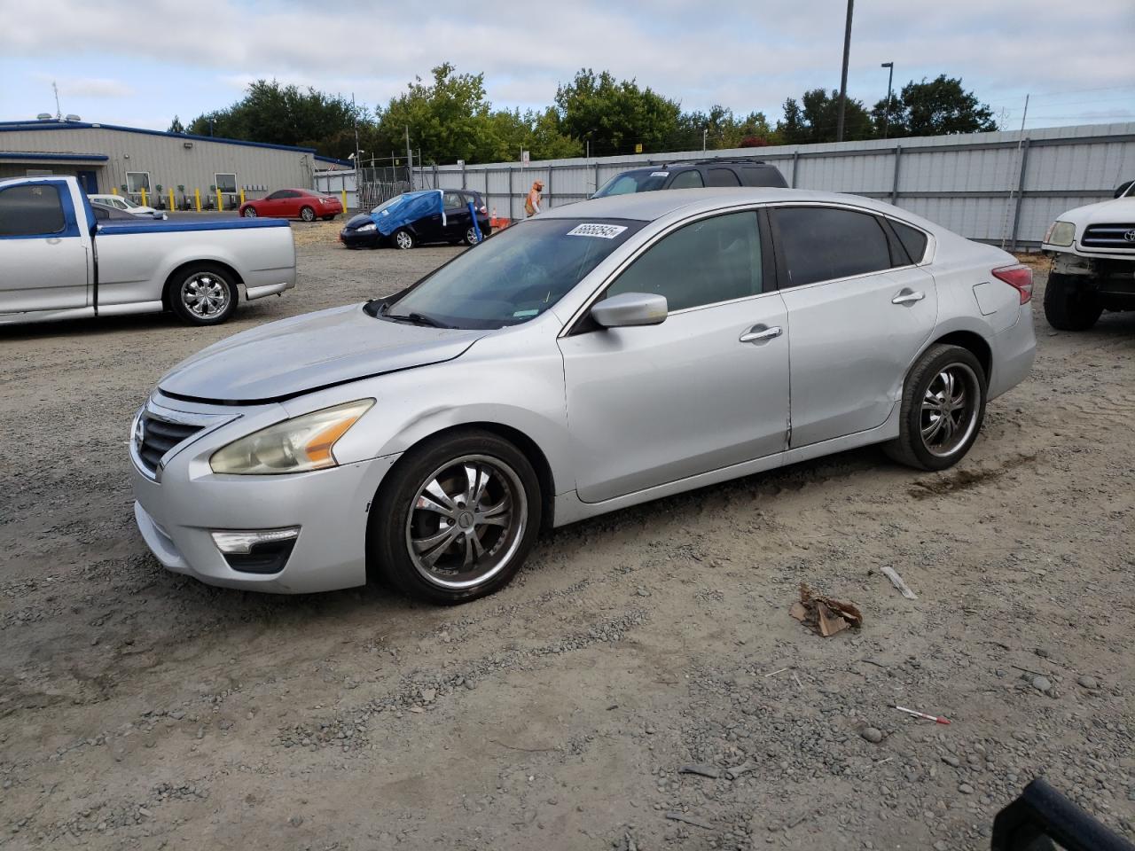 FairThe 2013 Nissan Altima 2.5 in gray is shown with damage primarily categorized as vandalism, affecting the body panels. The exterior displays multiple dents and scratches, and the vehicle's overall condition reflects these damages. The wheels appear intact, and the lights and glasses seem undamaged. The interior shows wear and tear consistent with its age and mileage, but the airbags are not visibly deployed. This Altima requires repairs. The car is drivable.