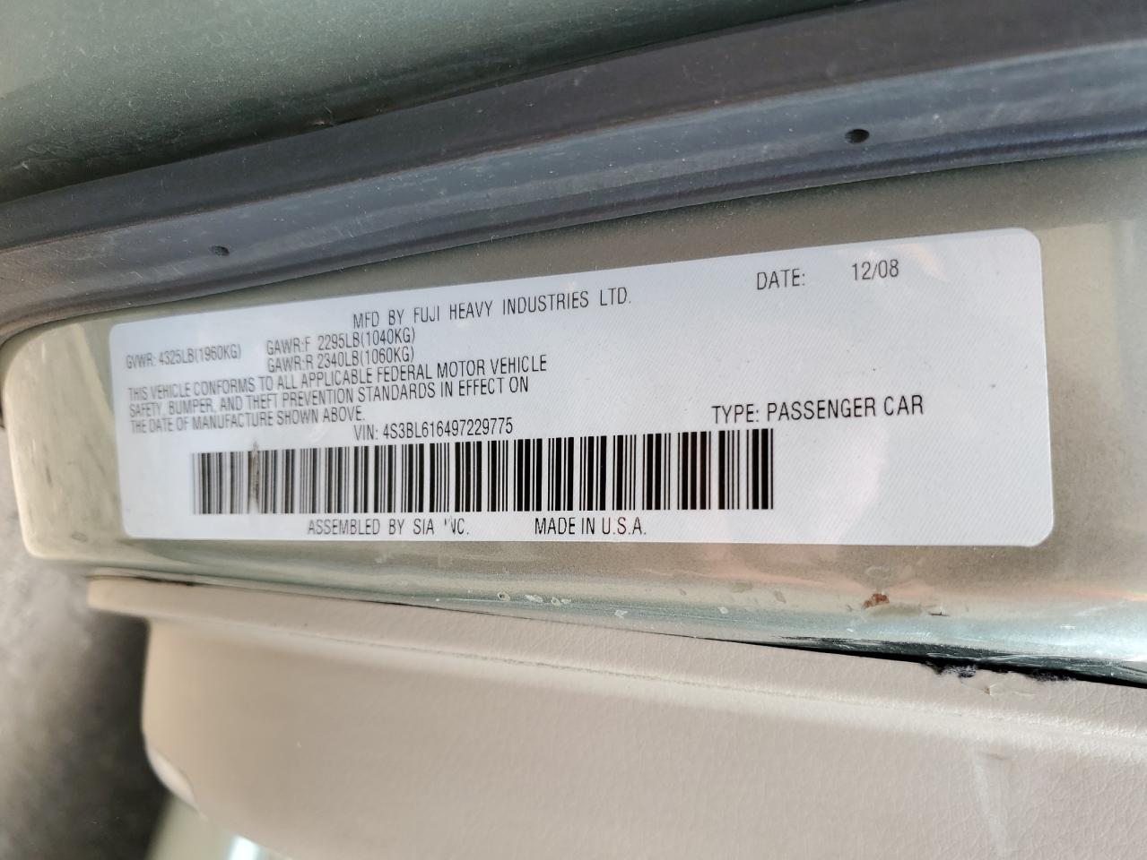 4S3BL616497229775Date
